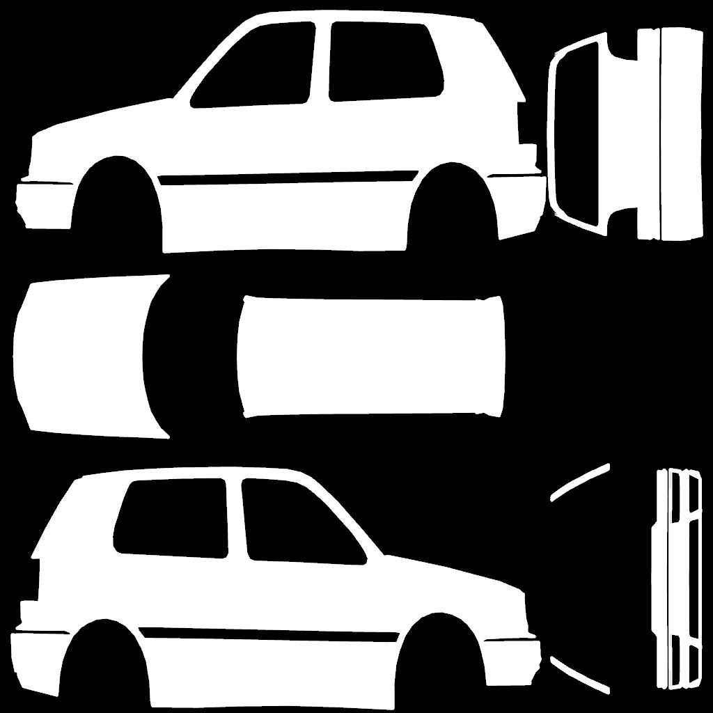 The LFS Vehicle editor provides options to create skin templates. A template helps you create skins for a vehicle by giving you the outlines of the vehicle's shape, within which you can draw the livery that will be drawn onto the vehicle.