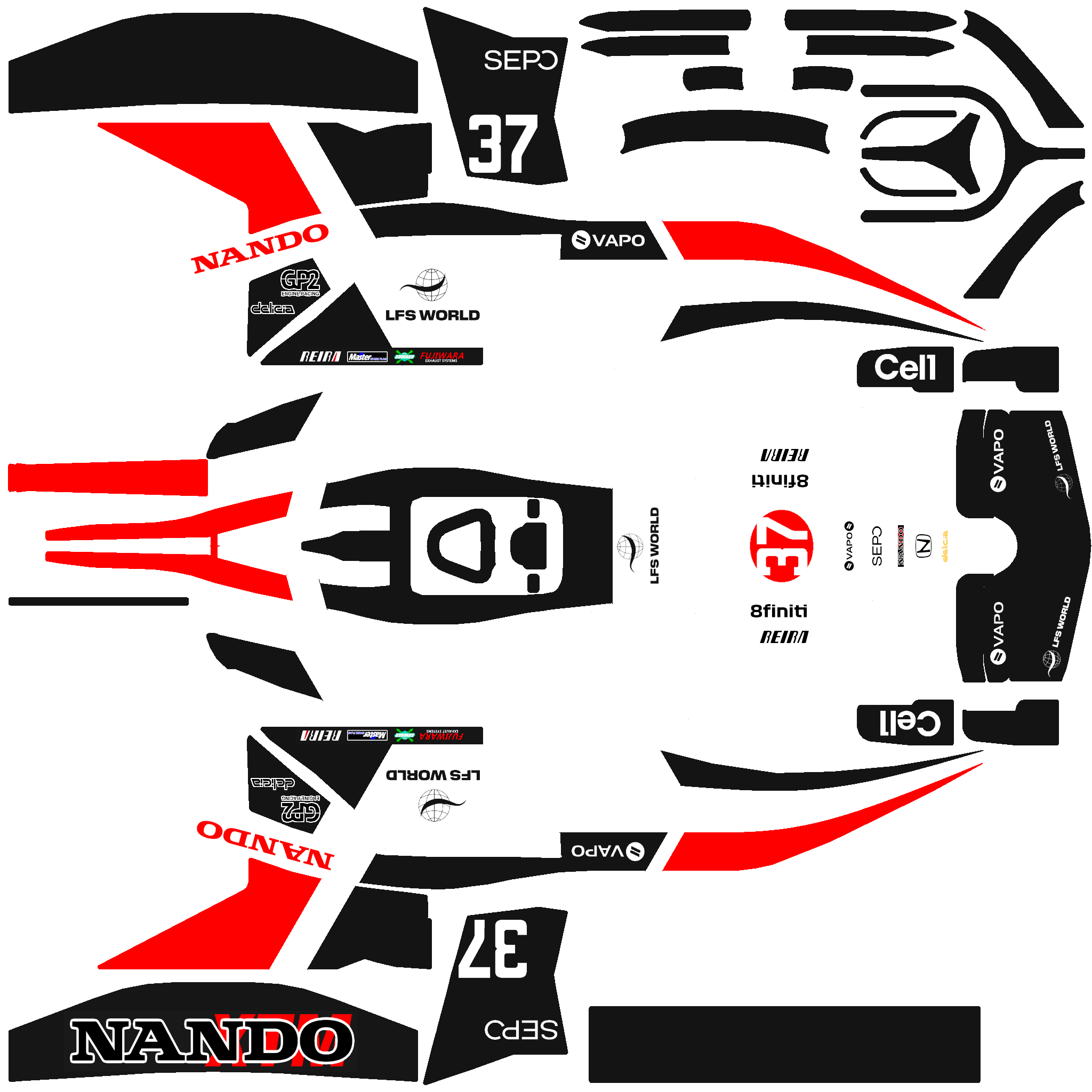 The model was made almost from scratch in the LFS Editor (only a few parts are from the FO8 car).