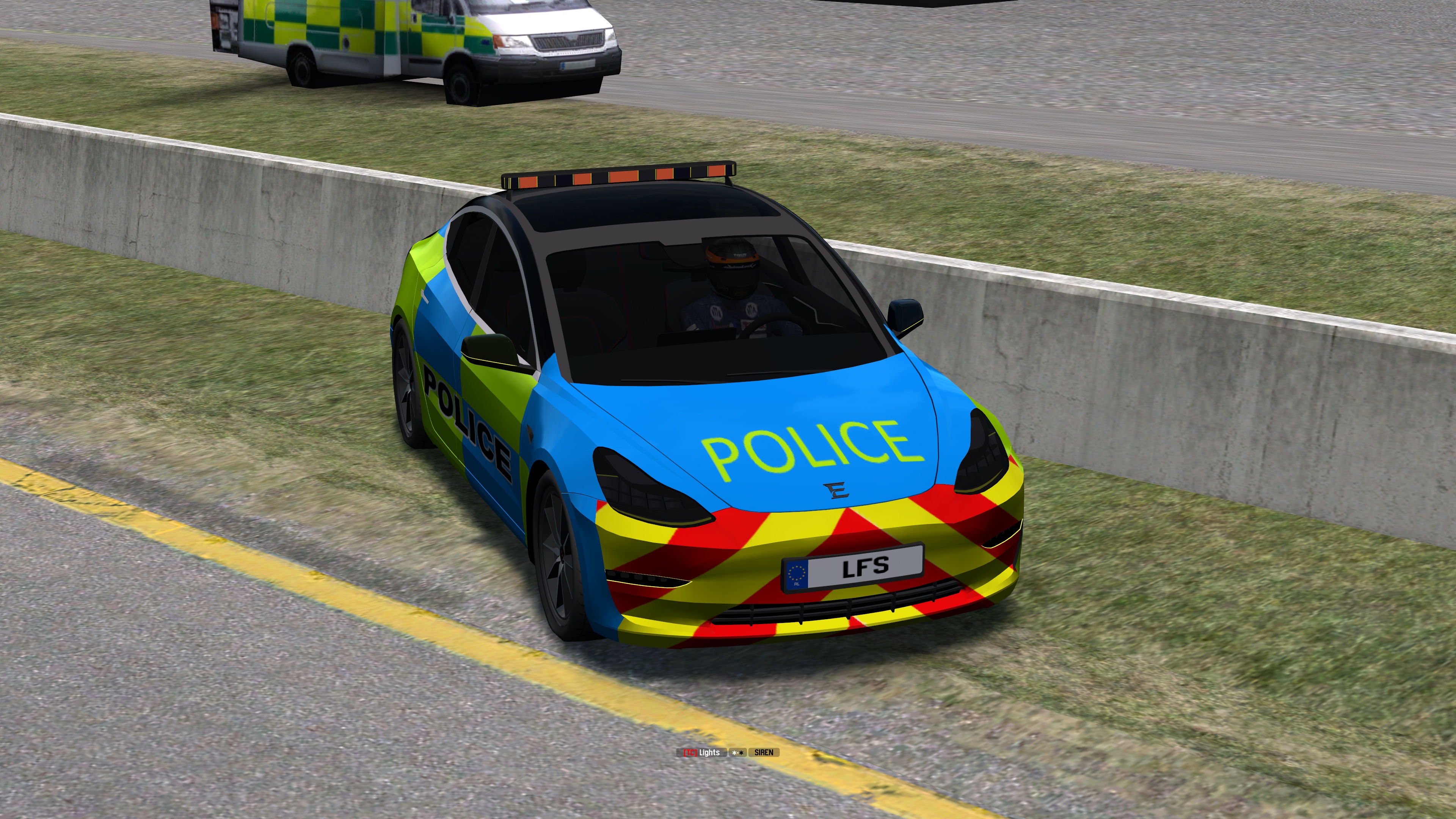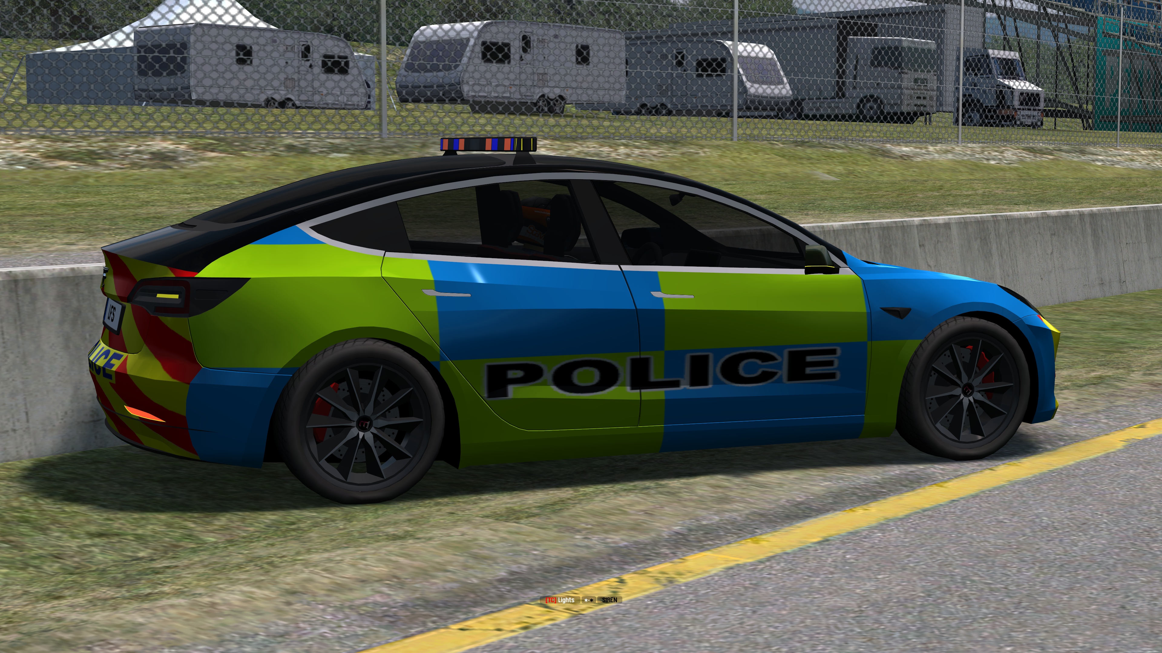 The EDISON 3-MODEL, is an AWD Electric Touring car. It comes with civilian config, but also comes with a lightbar and some default skins for Police/EMS role-play. Inspired by the circa 2020 Tesla Model 3.