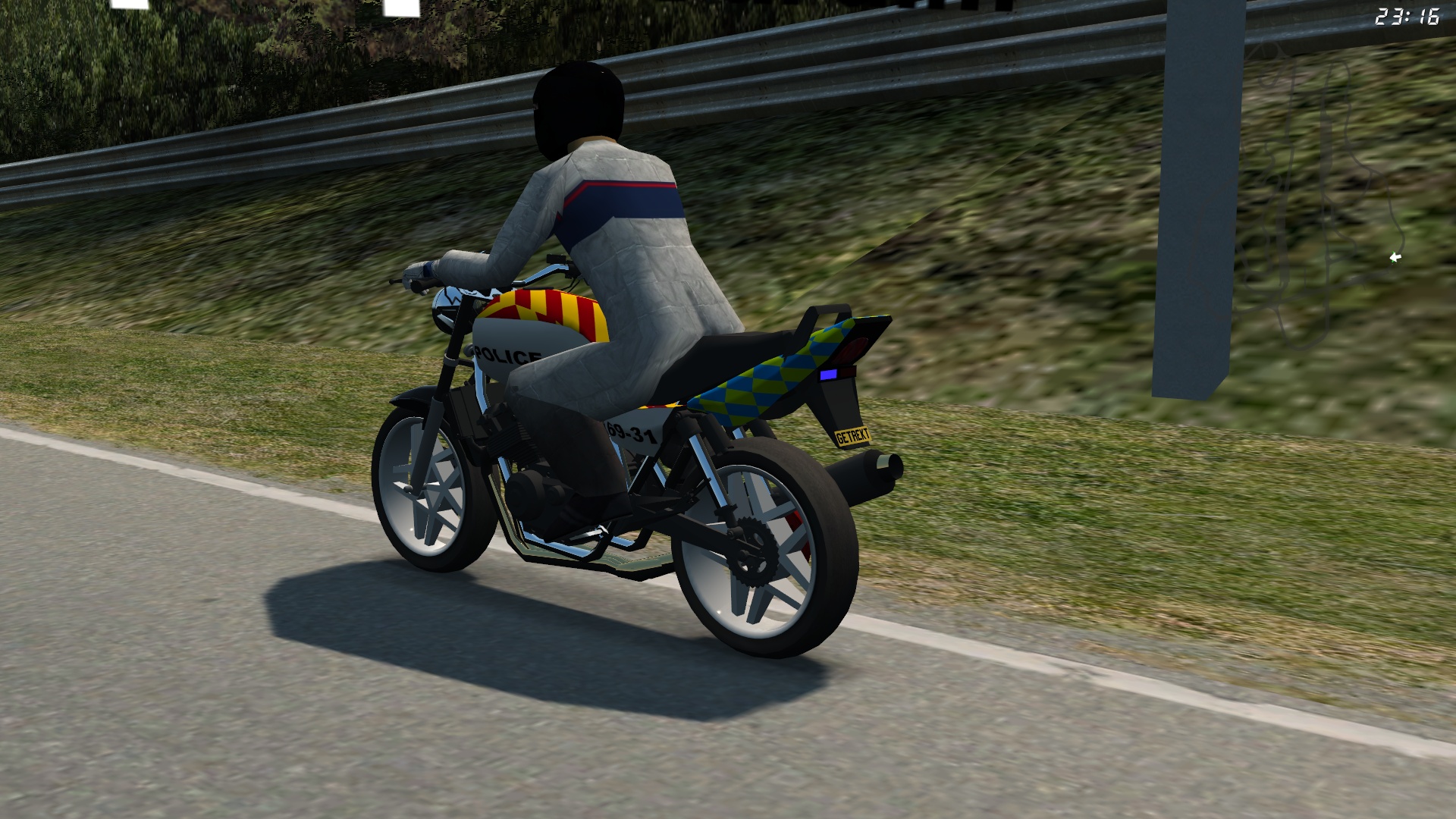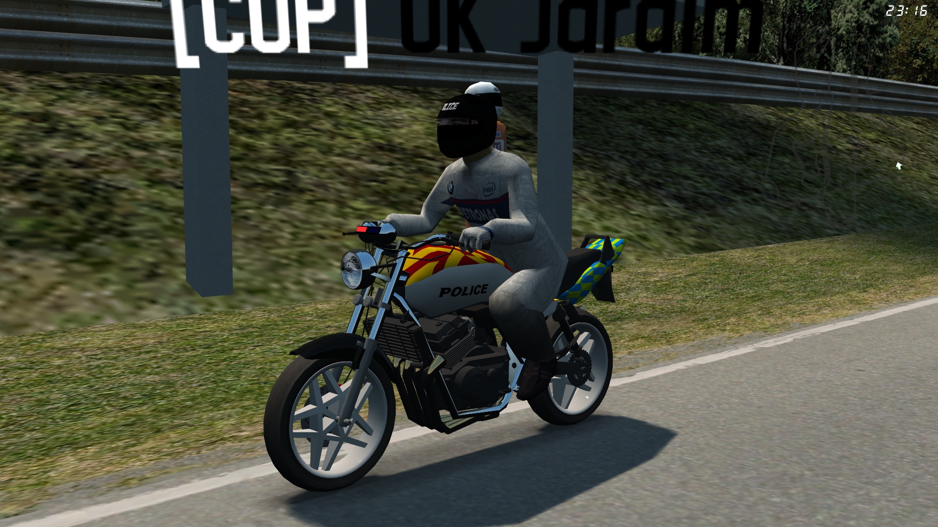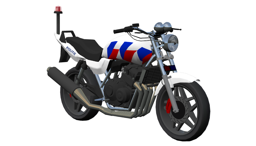 Police issue motorcycle with torquey 900cc engine for patrol duties and pursuit. Mapped the body to be skinned. separated tail light functions and made headlight work.