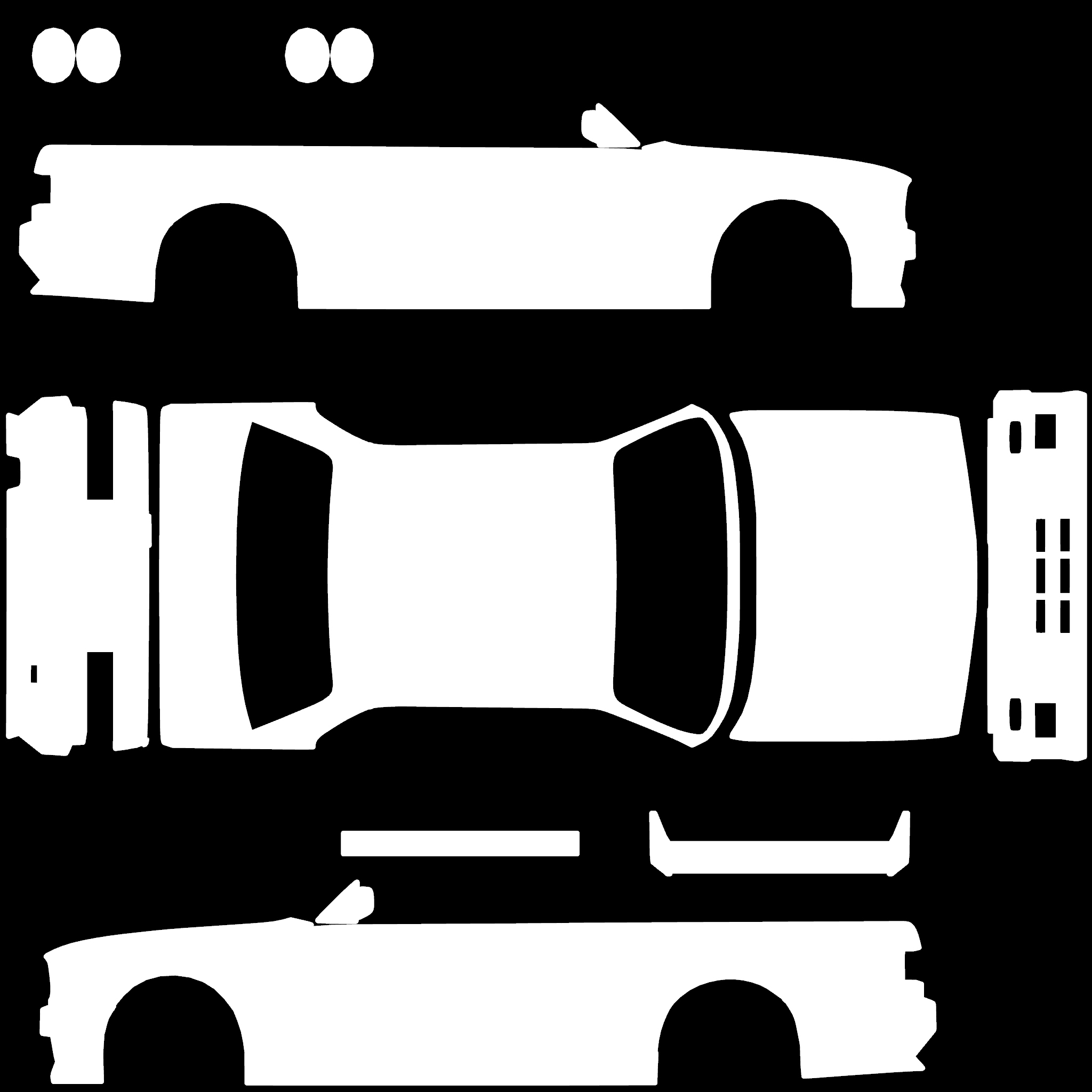 The LFS Vehicle editor provides options to create skin templates. A template helps you create skins for a vehicle by giving you the outlines of the vehicle's shape, within which you can draw the livery that will be drawn onto the vehicle.