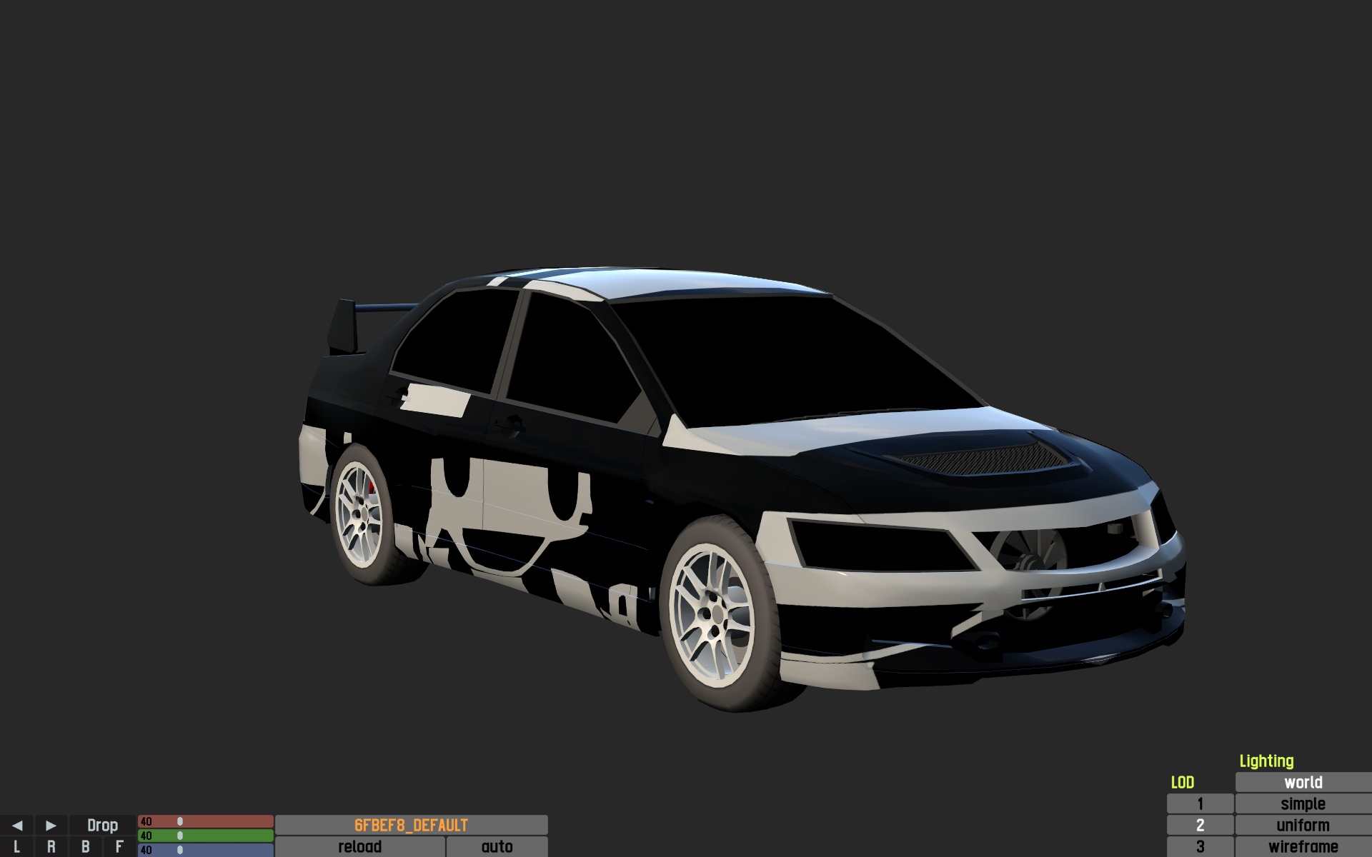 The LFS Vehicle editor provides options to create skin templates. A template helps you create skins for a vehicle by giving you the outlines of the vehicle's shape, within which you can draw the livery that will be drawn onto the vehicle.
