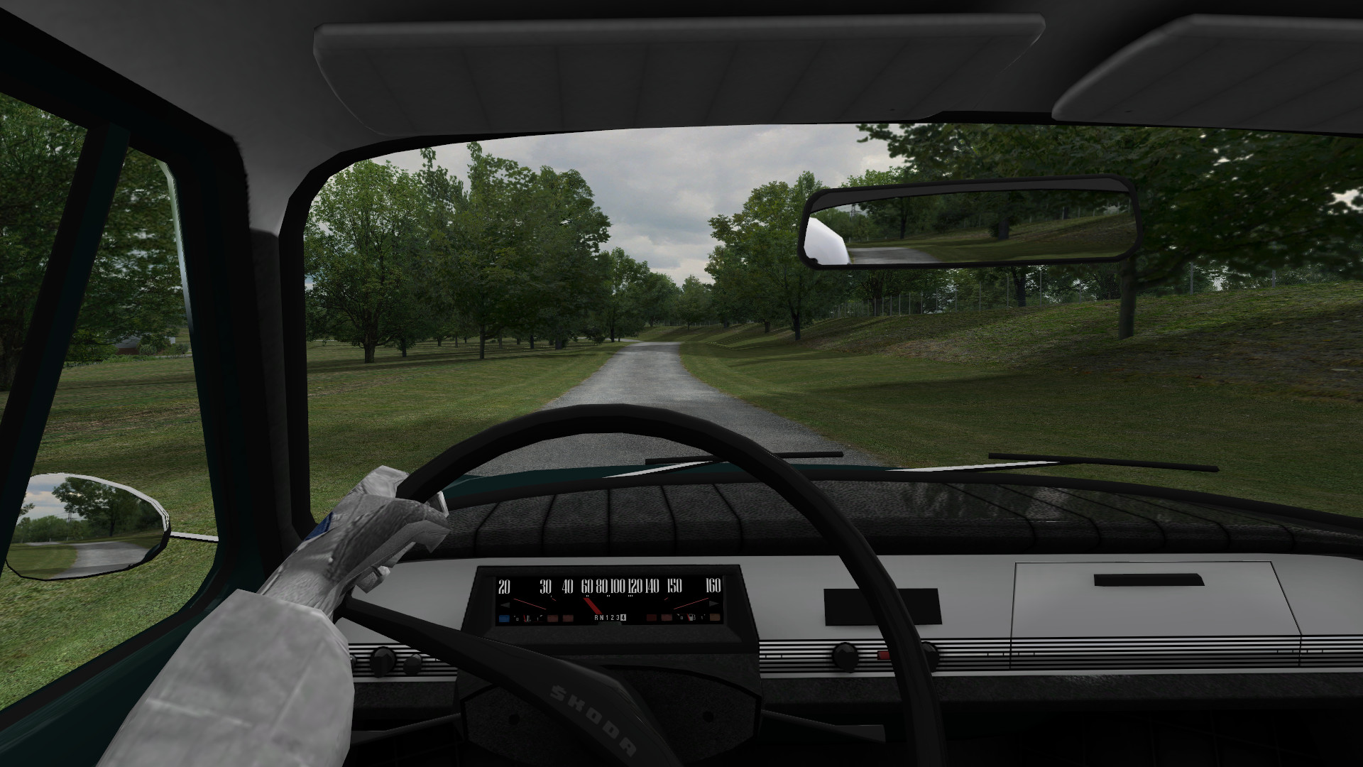 The axles are approximated as close as possible to the real car using technical blueprints from repair manuals. The force-feedback strength should be set approximately to 30-50, because it had a heavy worm-and-roller steering, which had considerably less self-centering effect than a rack-and-pinion steering (despite larger caster value). The top speed for each gear is marked on the dashboard.