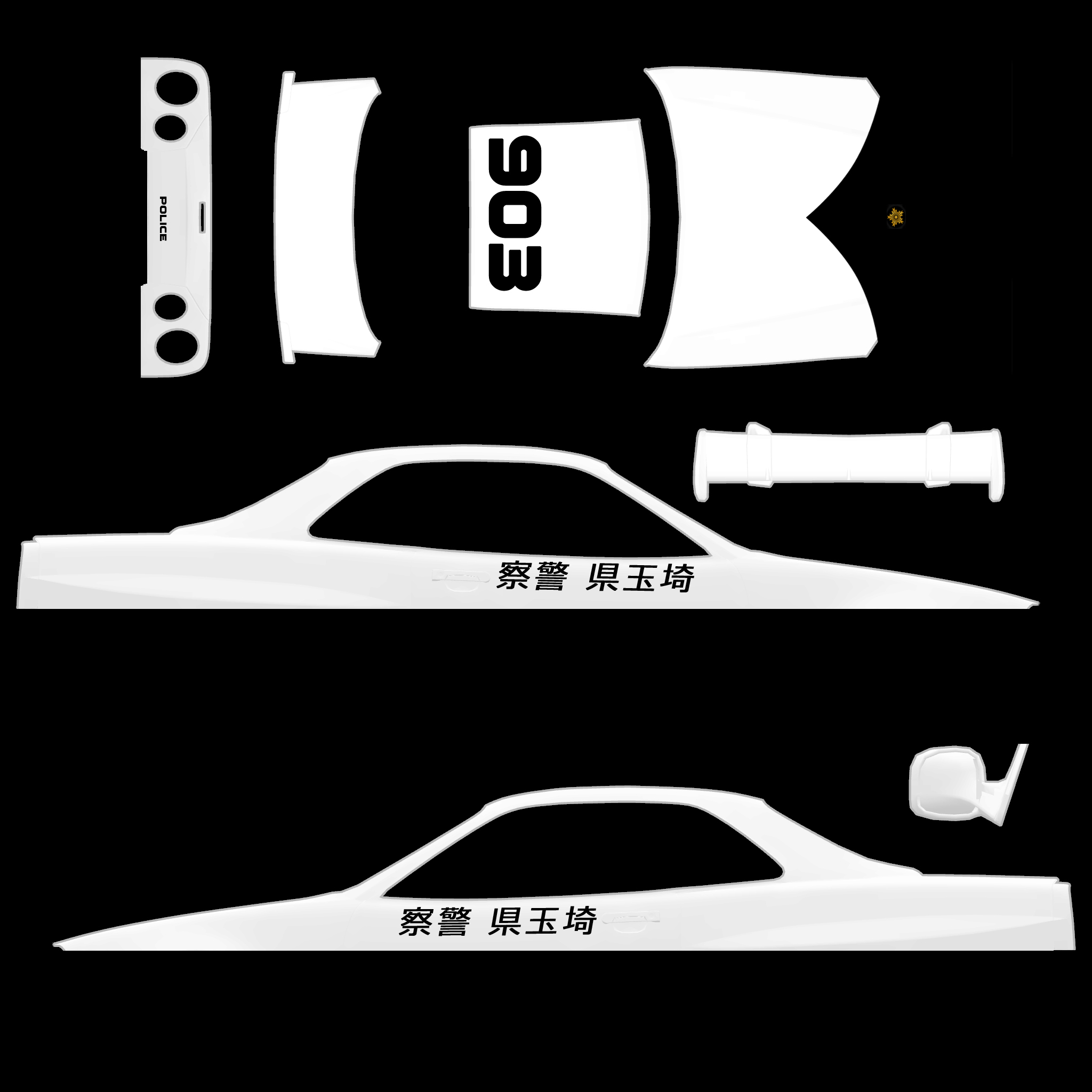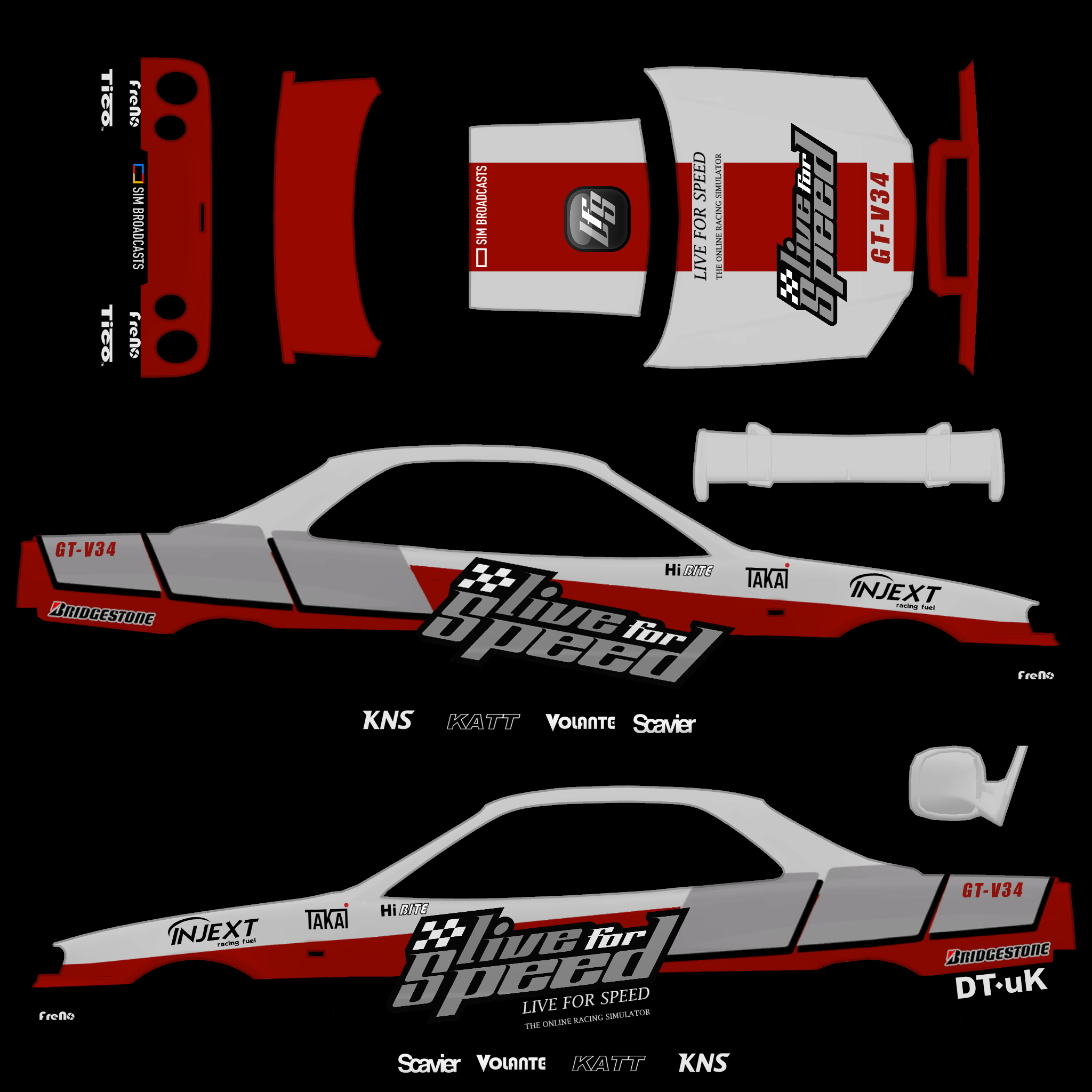 The LFS Vehicle editor provides options to create skin templates. A template helps you create skins for a vehicle by giving you the outlines of the vehicle's shape, within which you can draw the livery that will be drawn onto the vehicle.