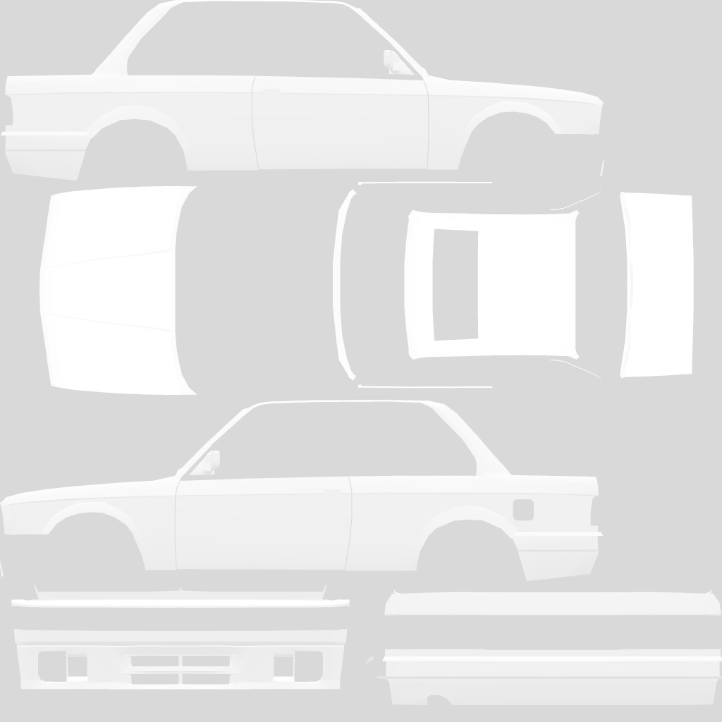 The LFS Vehicle editor provides options to create skin templates. A template helps you create skins for a vehicle by giving you the outlines of the vehicle's shape, within which you can draw the livery that will be drawn onto the vehicle.