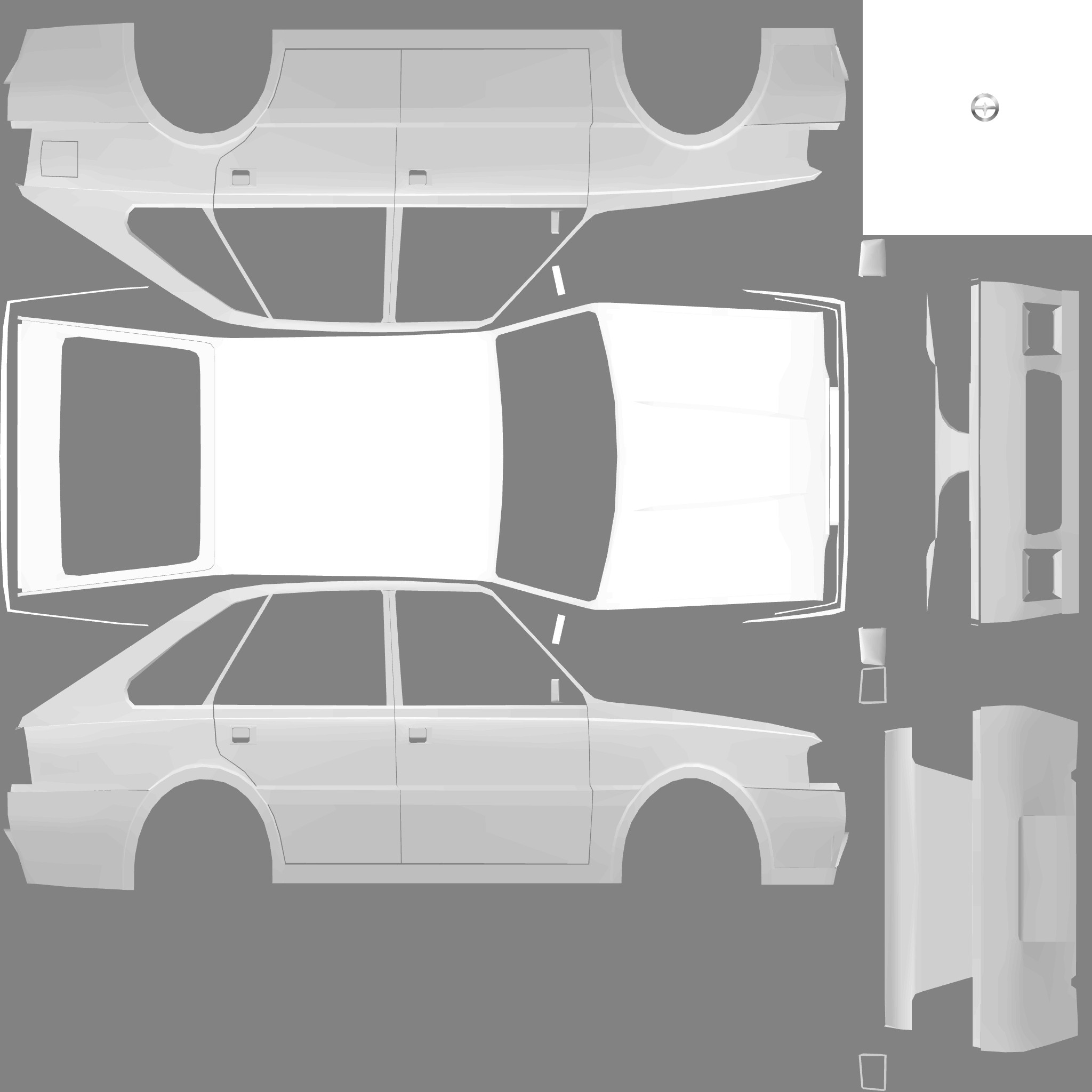 The LFS Vehicle editor provides options to create skin templates. A template helps you create skins for a vehicle by giving you the outlines of the vehicle's shape, within which you can draw the livery that will be drawn onto the vehicle.