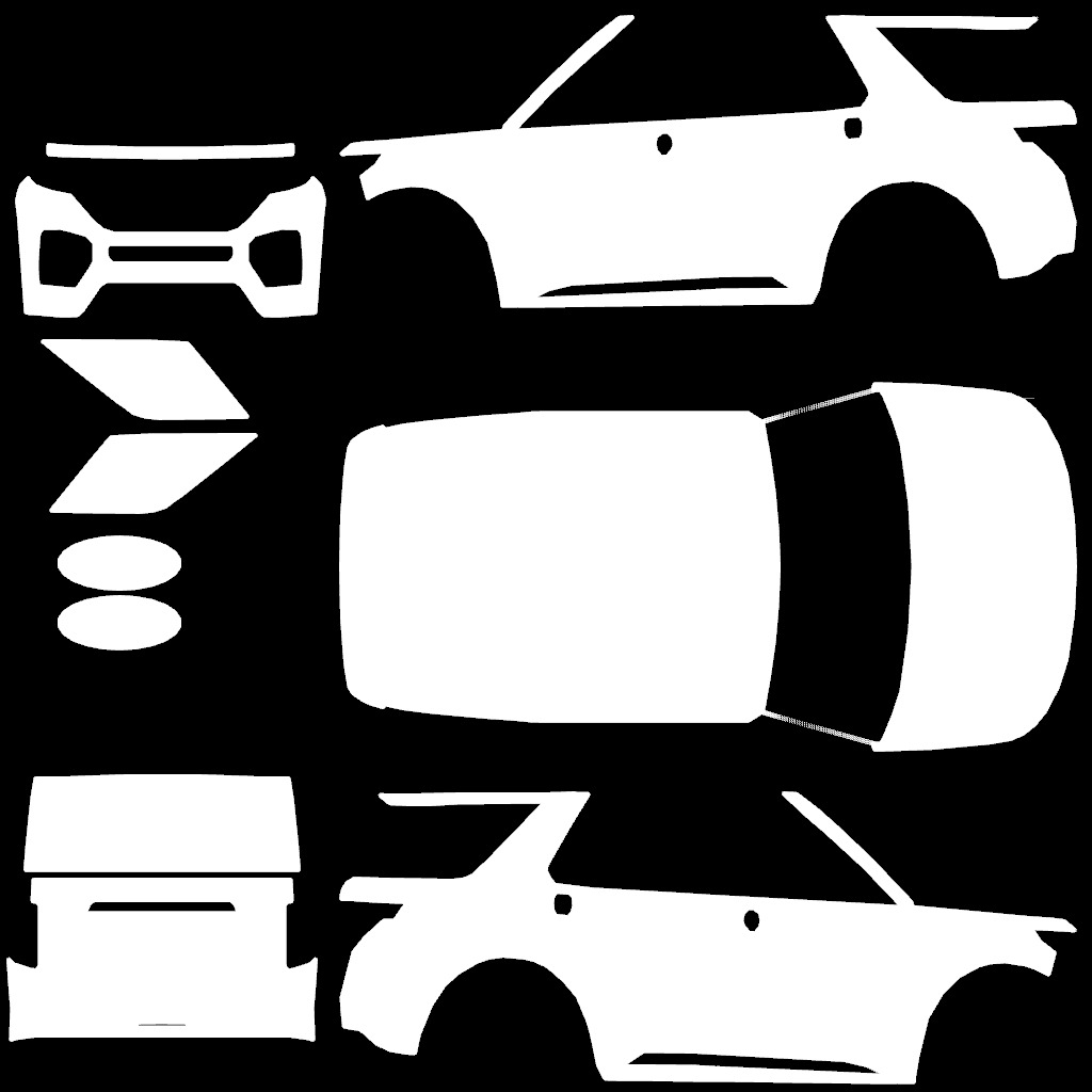 The LFS Vehicle editor provides options to create skin templates. A template helps you create skins for a vehicle by giving you the outlines of the vehicle's shape, within which you can draw the livery that will be drawn onto the vehicle.