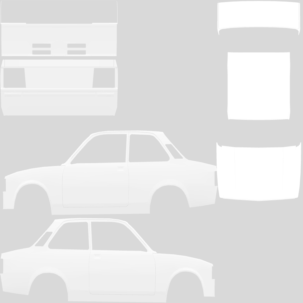 The LFS Vehicle editor provides options to create skin templates. A template helps you create skins for a vehicle by giving you the outlines of the vehicle's shape, within which you can draw the livery that will be drawn onto the vehicle.