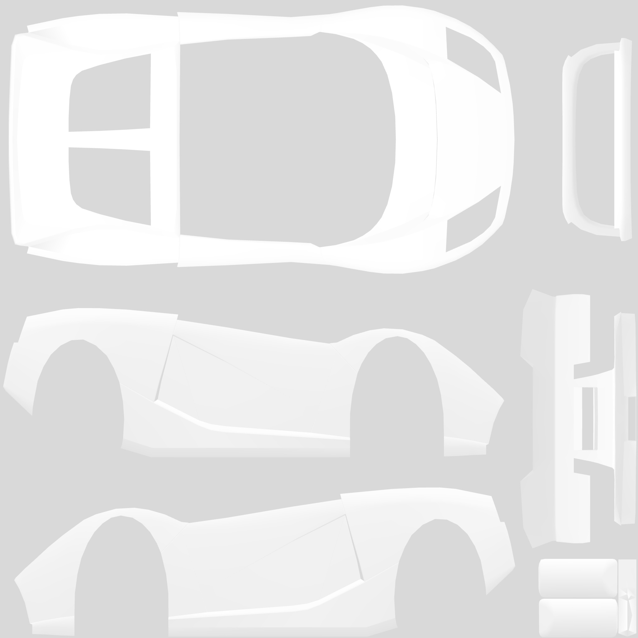 The LFS Vehicle editor provides options to create skin templates. A template helps you create skins for a vehicle by giving you the outlines of the vehicle's shape, within which you can draw the livery that will be drawn onto the vehicle.