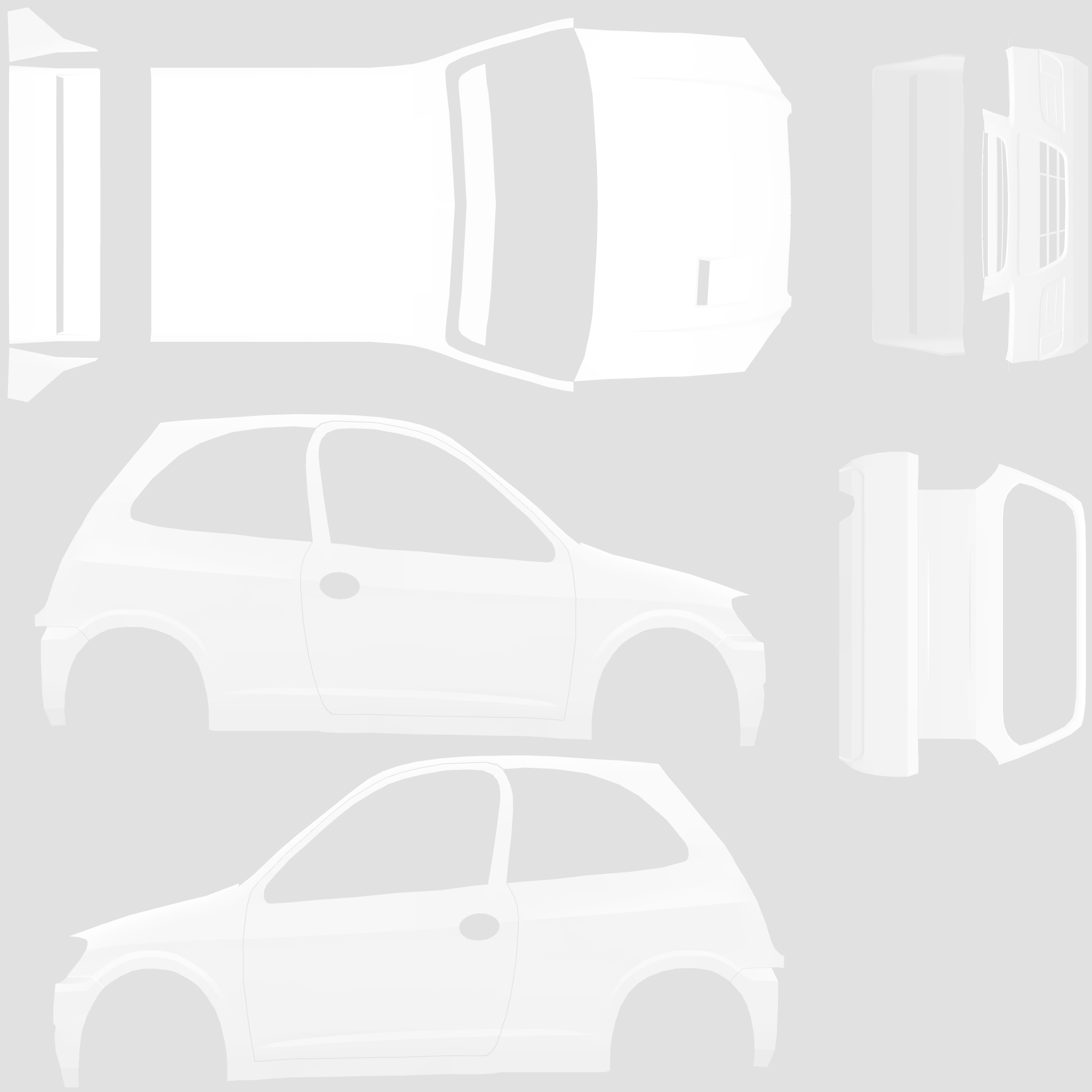 The LFS Vehicle editor provides options to create skin templates. A template helps you create skins for a vehicle by giving you the outlines of the vehicle's shape, within which you can draw the livery that will be drawn onto the vehicle.