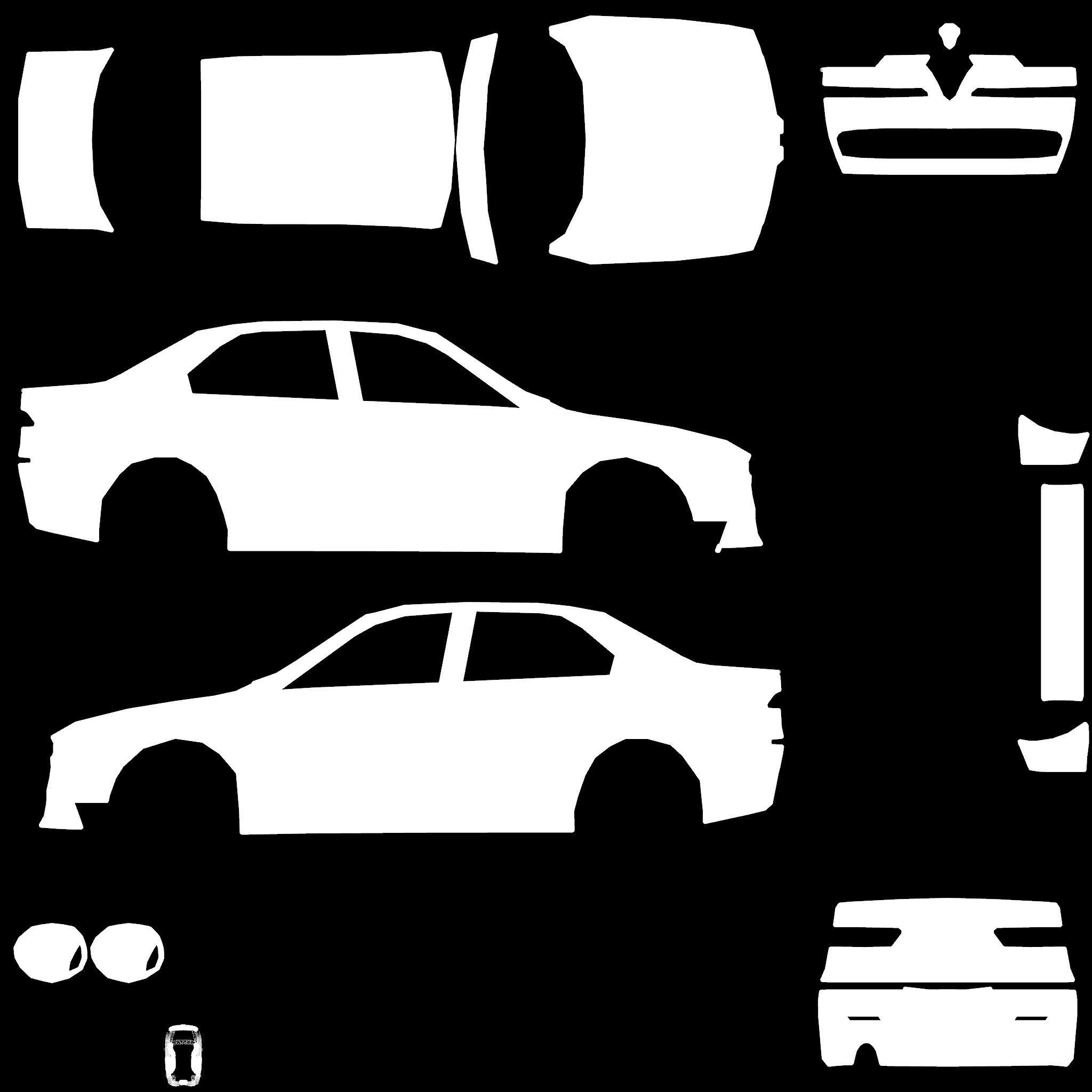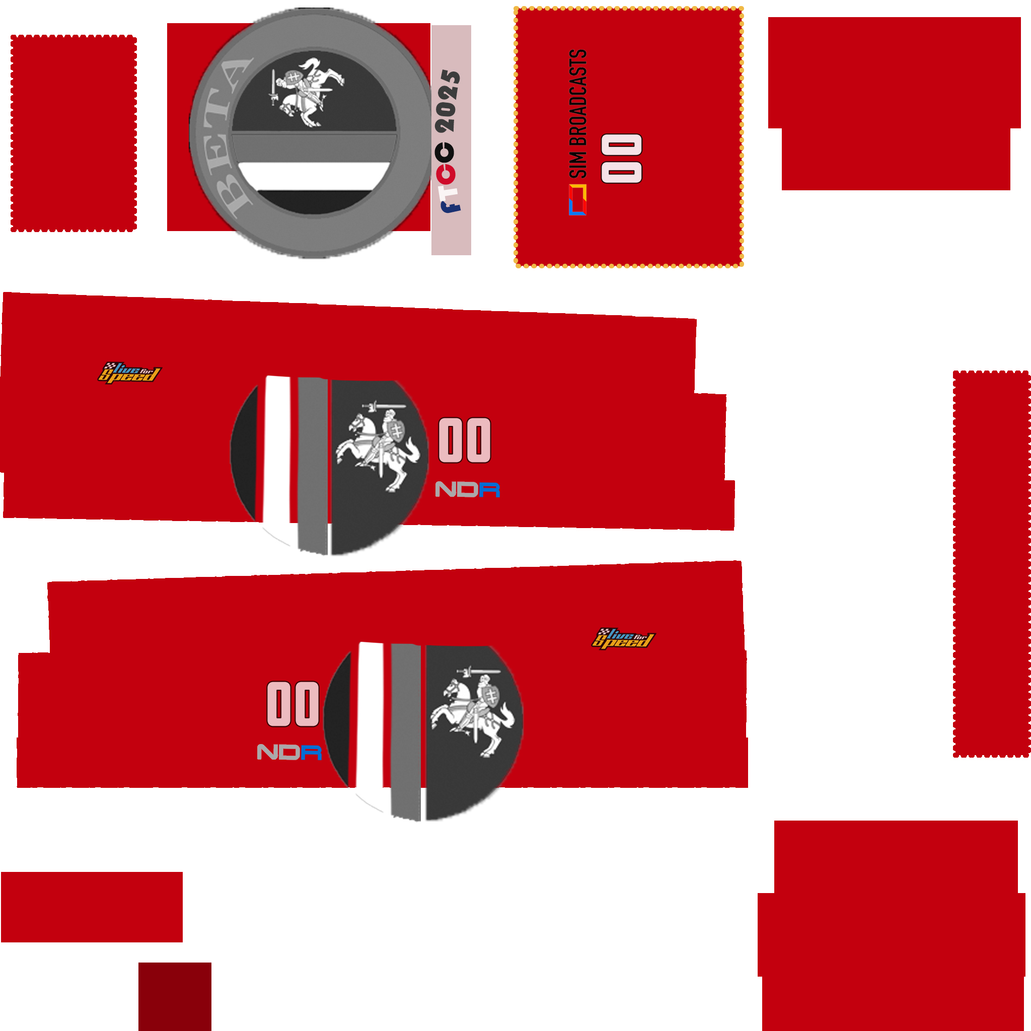 The LFS Vehicle editor provides options to create skin templates. A template helps you create skins for a vehicle by giving you the outlines of the vehicle's shape, within which you can draw the livery that will be drawn onto the vehicle.