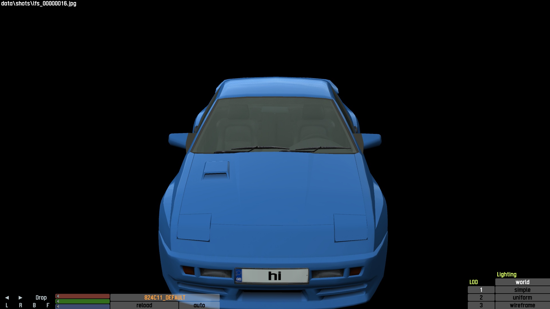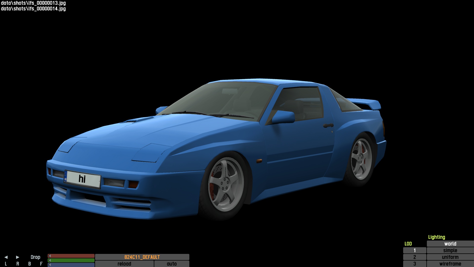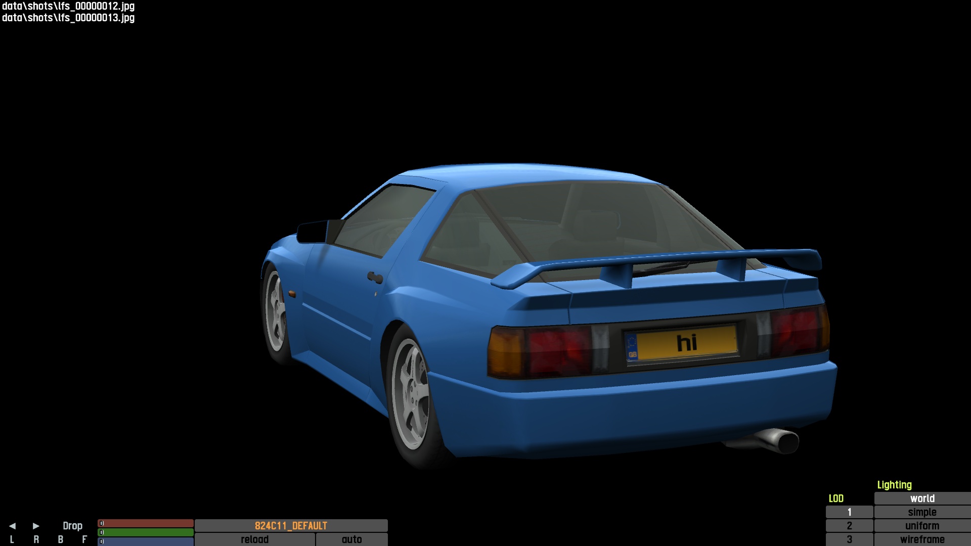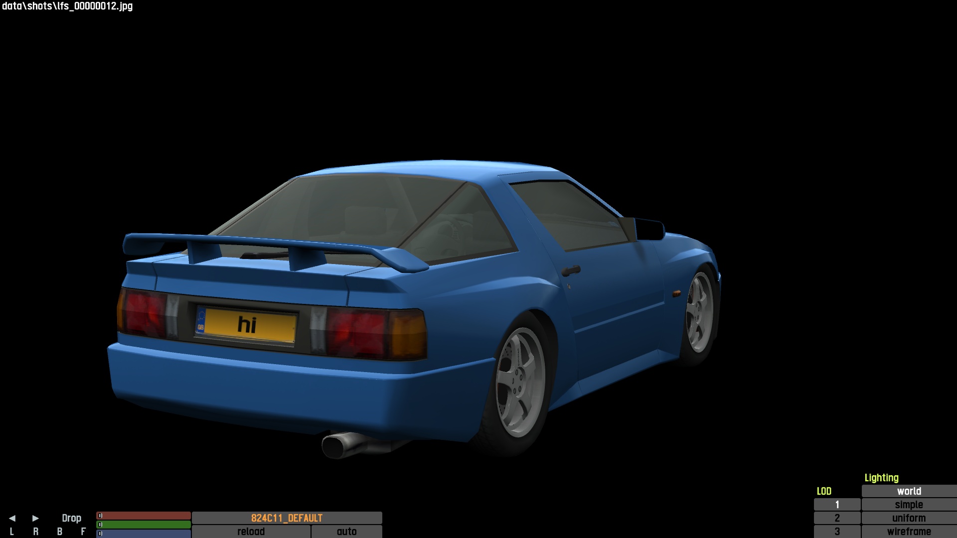 The LFS Vehicle editor provides options to create skin templates. A template helps you create skins for a vehicle by giving you the outlines of the vehicle's shape, within which you can draw the livery that will be drawn onto the vehicle.