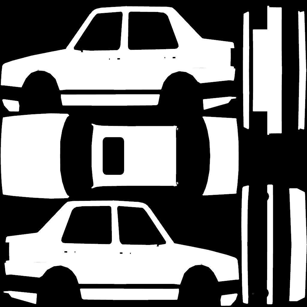 The LFS Vehicle editor provides options to create skin templates. A template helps you create skins for a vehicle by giving you the outlines of the vehicle's shape, within which you can draw the livery that will be drawn onto the vehicle.