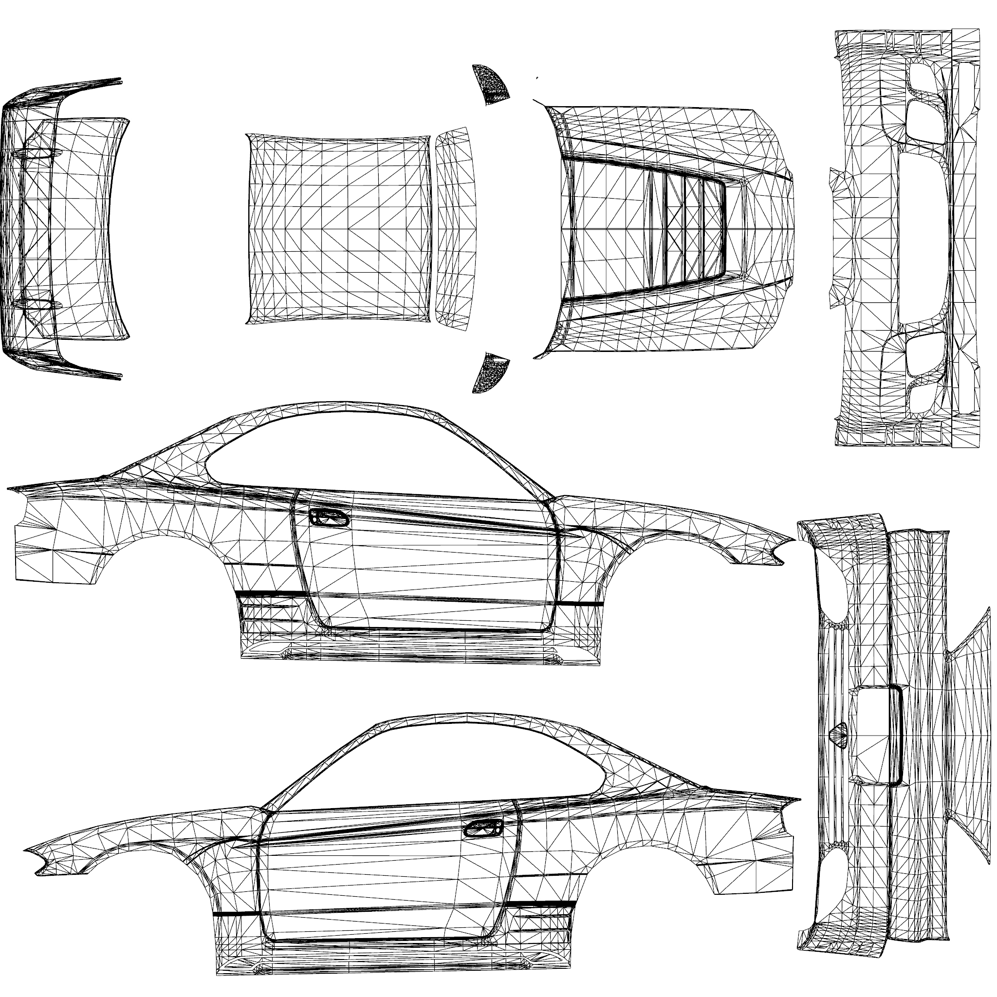 The LFS Vehicle editor provides options to create skin templates. A template helps you create skins for a vehicle by giving you the outlines of the vehicle's shape, within which you can draw the livery that will be drawn onto the vehicle.