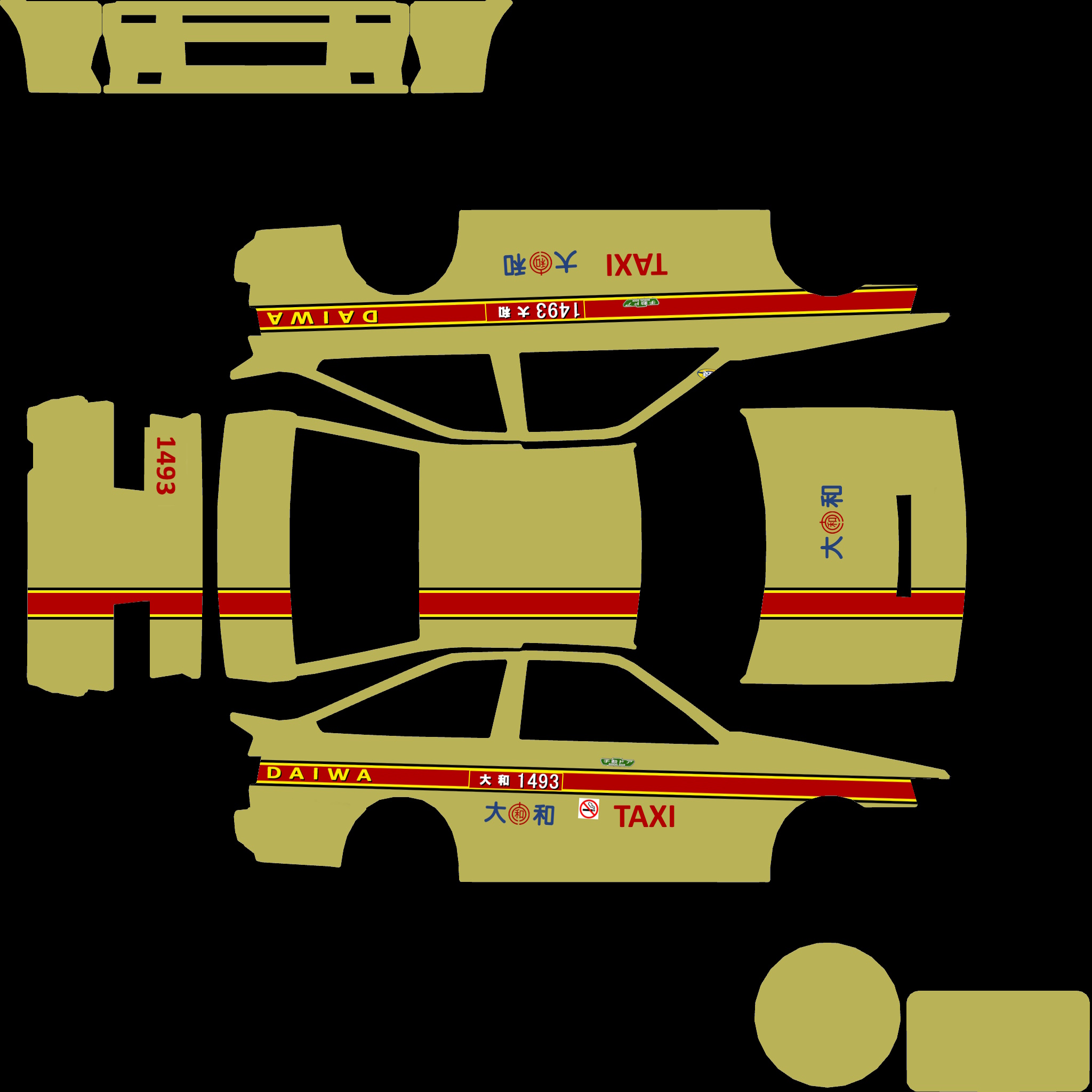 The LFS Vehicle editor provides options to create skin templates. A template helps you create skins for a vehicle by giving you the outlines of the vehicle's shape, within which you can draw the livery that will be drawn onto the vehicle.
