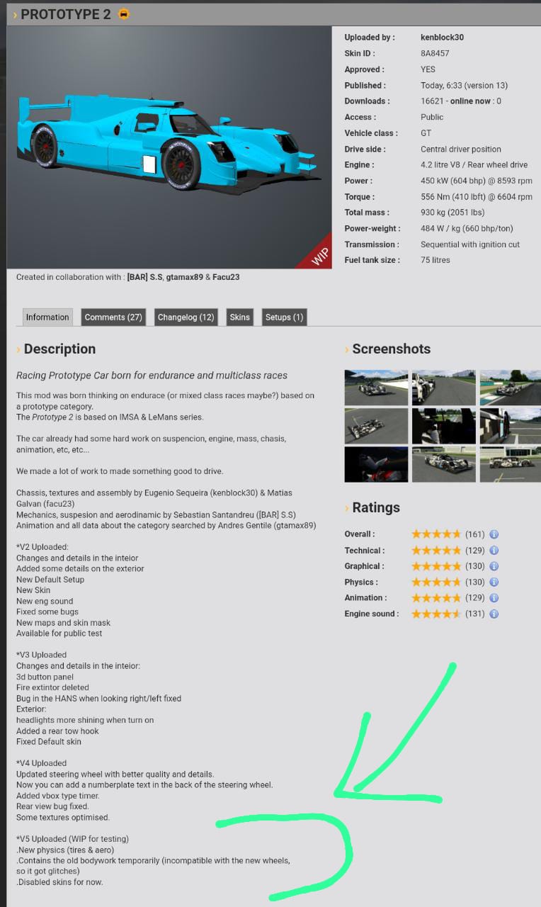 The author of this Vehicle Mod has indicated that this work is an original creation and has provided the following description of the approach:2 months making and moving a lot of tris and points, reading and learning pdf files found on internet about the category of this cars, watching some videos like this one: https://www.youtube.com/watch?v=0bB2kHAi02g in slow camera trying to find all details that we cannot found on internet like suspencion links, searching in websites like Michelin to know the real parameters of tires