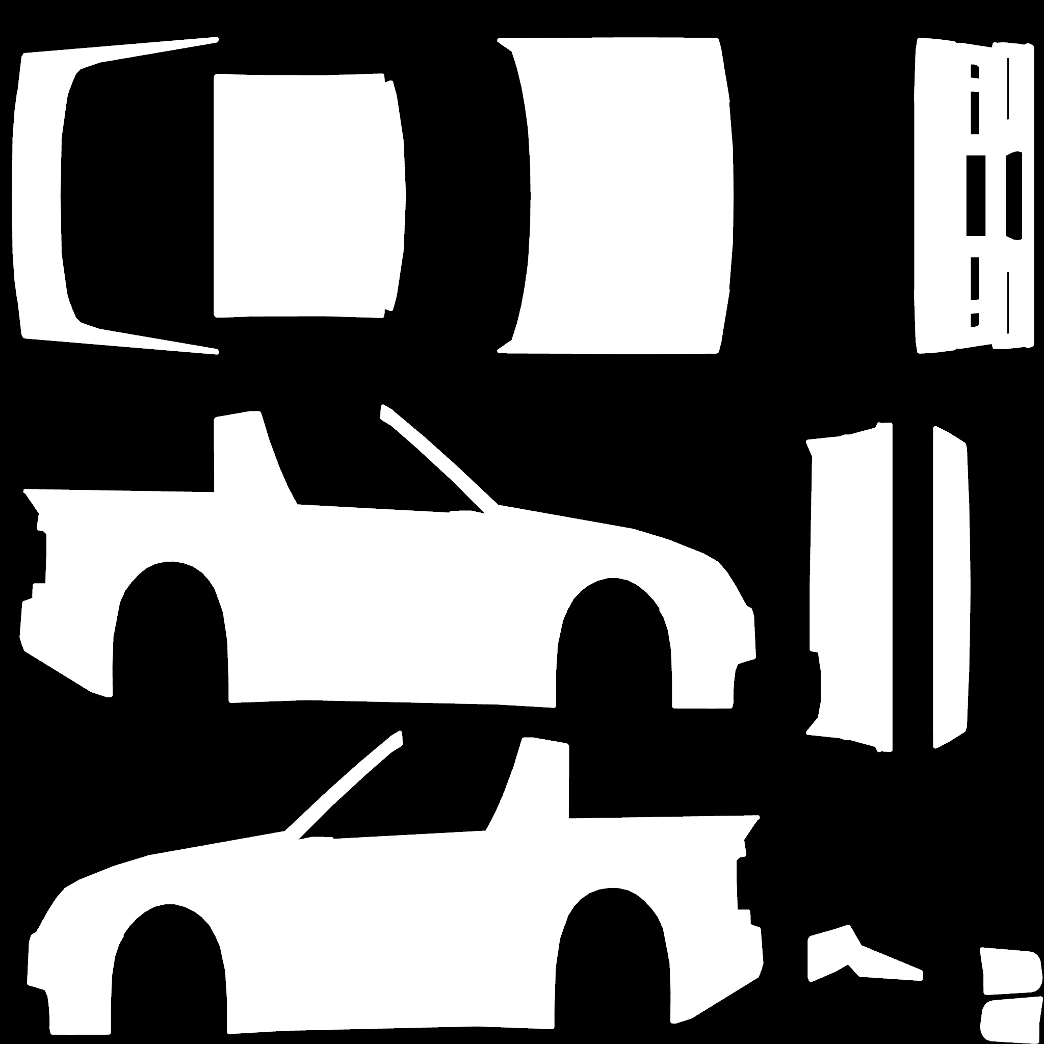The LFS Vehicle editor provides options to create skin templates. A template helps you create skins for a vehicle by giving you the outlines of the vehicle's shape, within which you can draw the livery that will be drawn onto the vehicle.
