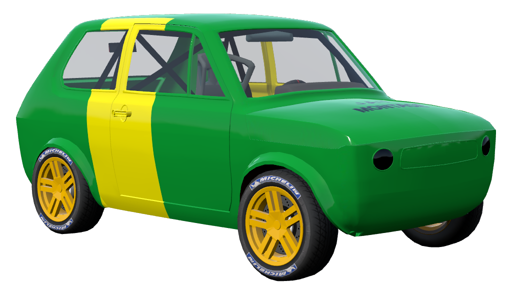 Bilcross car inspired by finnish Jokkis and Swedish folkrace. Fiat with 2.3 liter engine in the rear. Providing a small fun car to drive on concrete or gravel.
