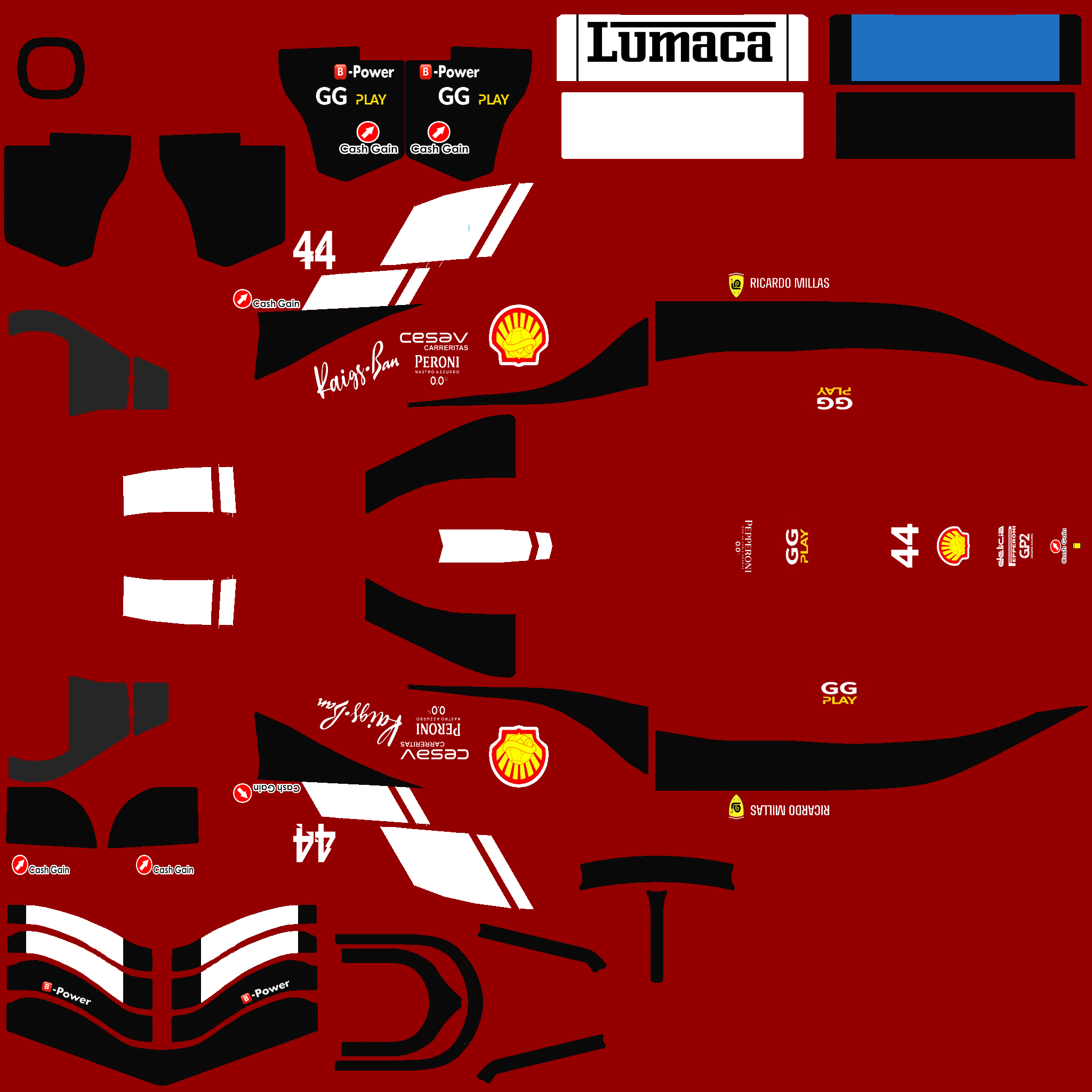 The LFS Vehicle editor provides options to create skin templates. A template helps you create skins for a vehicle by giving you the outlines of the vehicle's shape, within which you can draw the livery that will be drawn onto the vehicle.