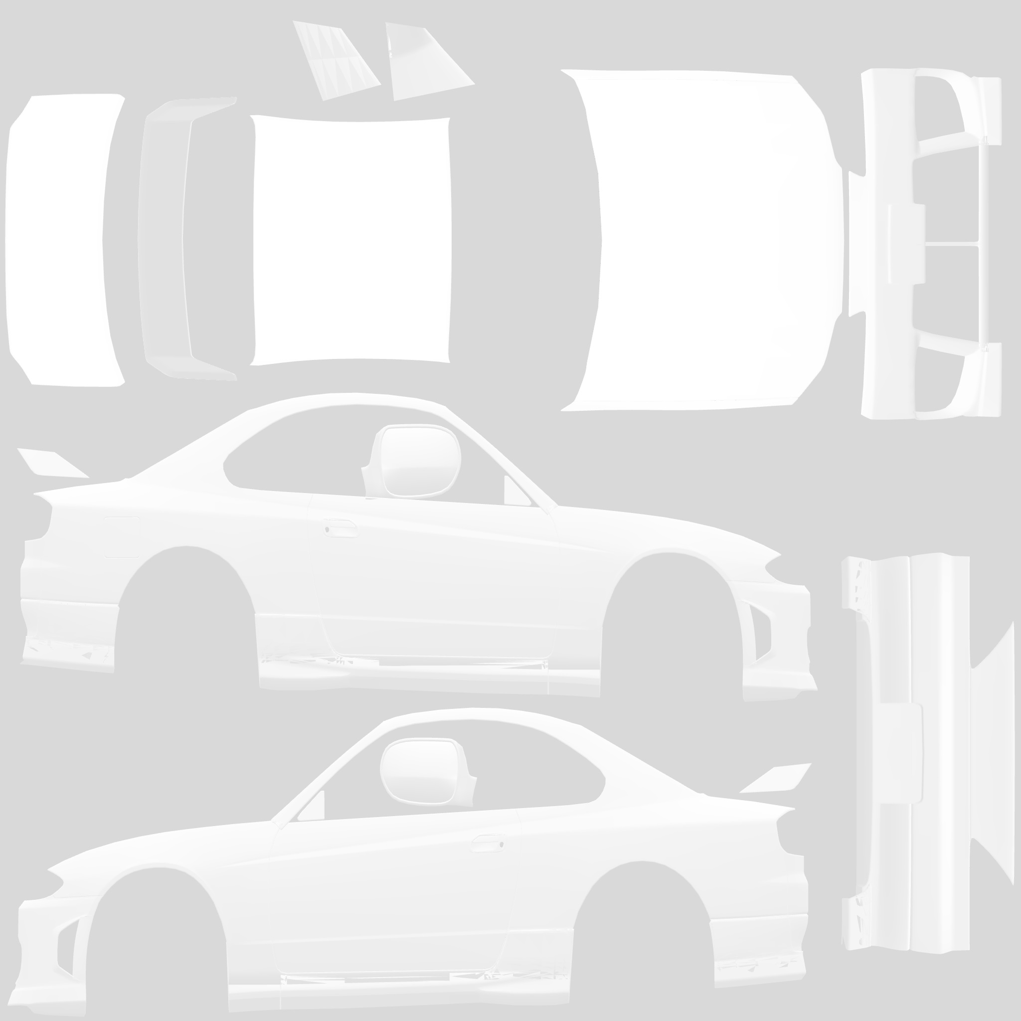 The LFS Vehicle editor provides options to create skin templates. A template helps you create skins for a vehicle by giving you the outlines of the vehicle's shape, within which you can draw the livery that will be drawn onto the vehicle.
