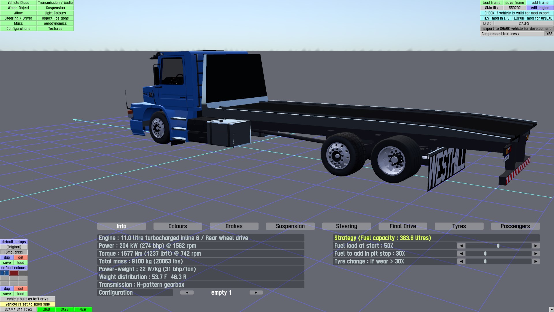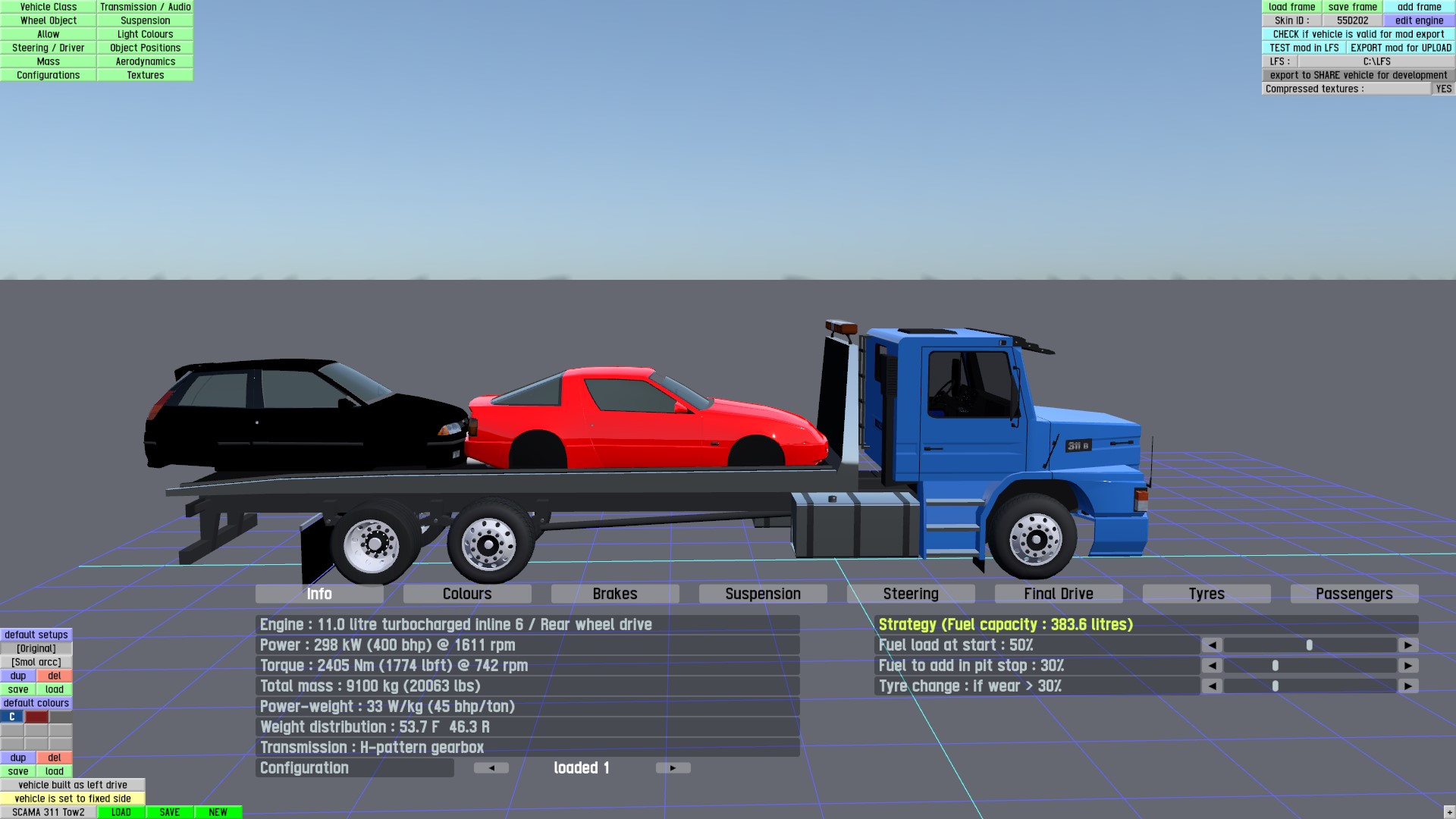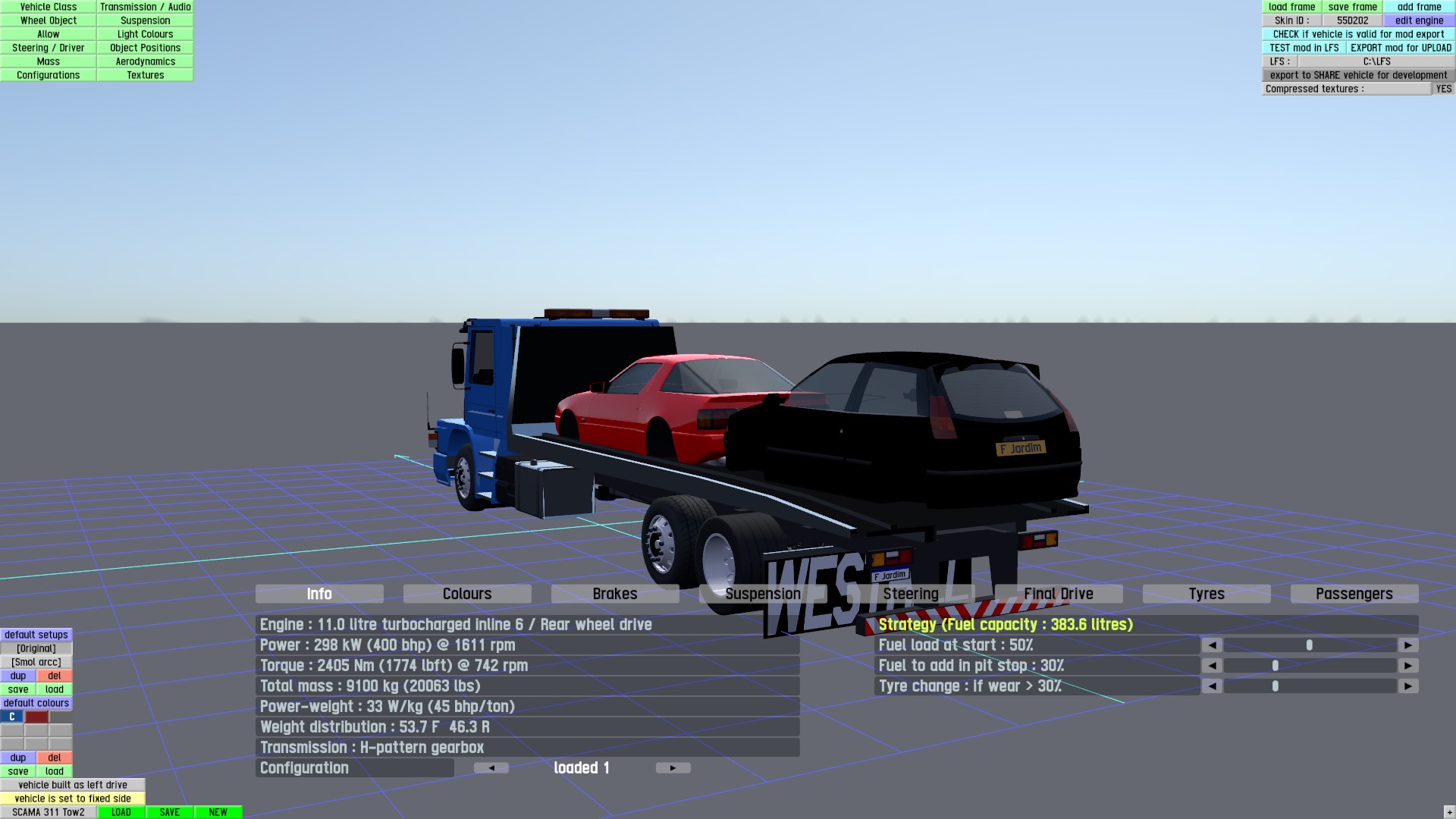 Towing version of Scama, upgraded with the "400" package offered in Europe, which is needed for the extra weight. All of the real credit goes to Lucas VTR who made this available for us all to use. Credit to Oniwhite for the flatbed.
