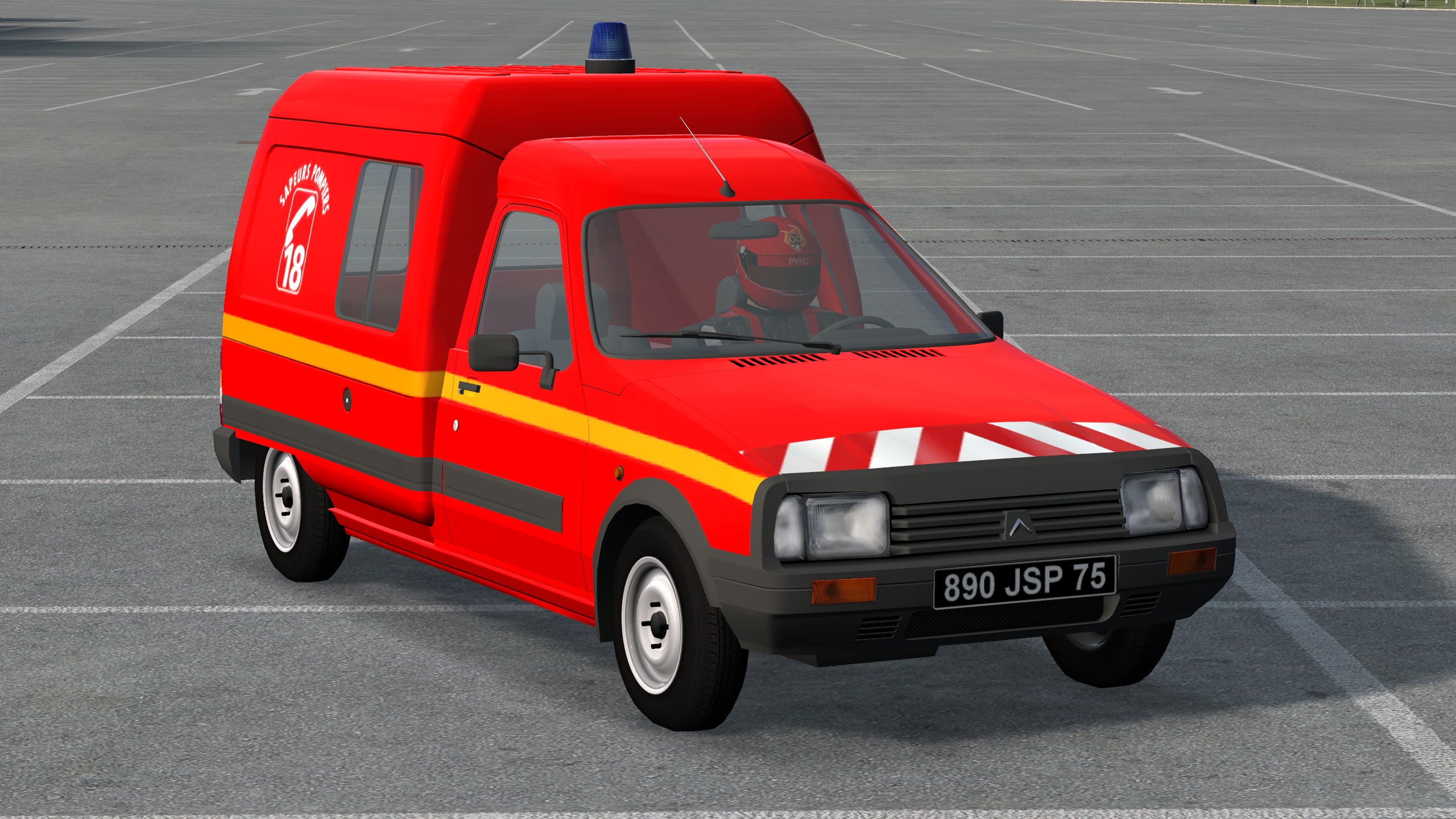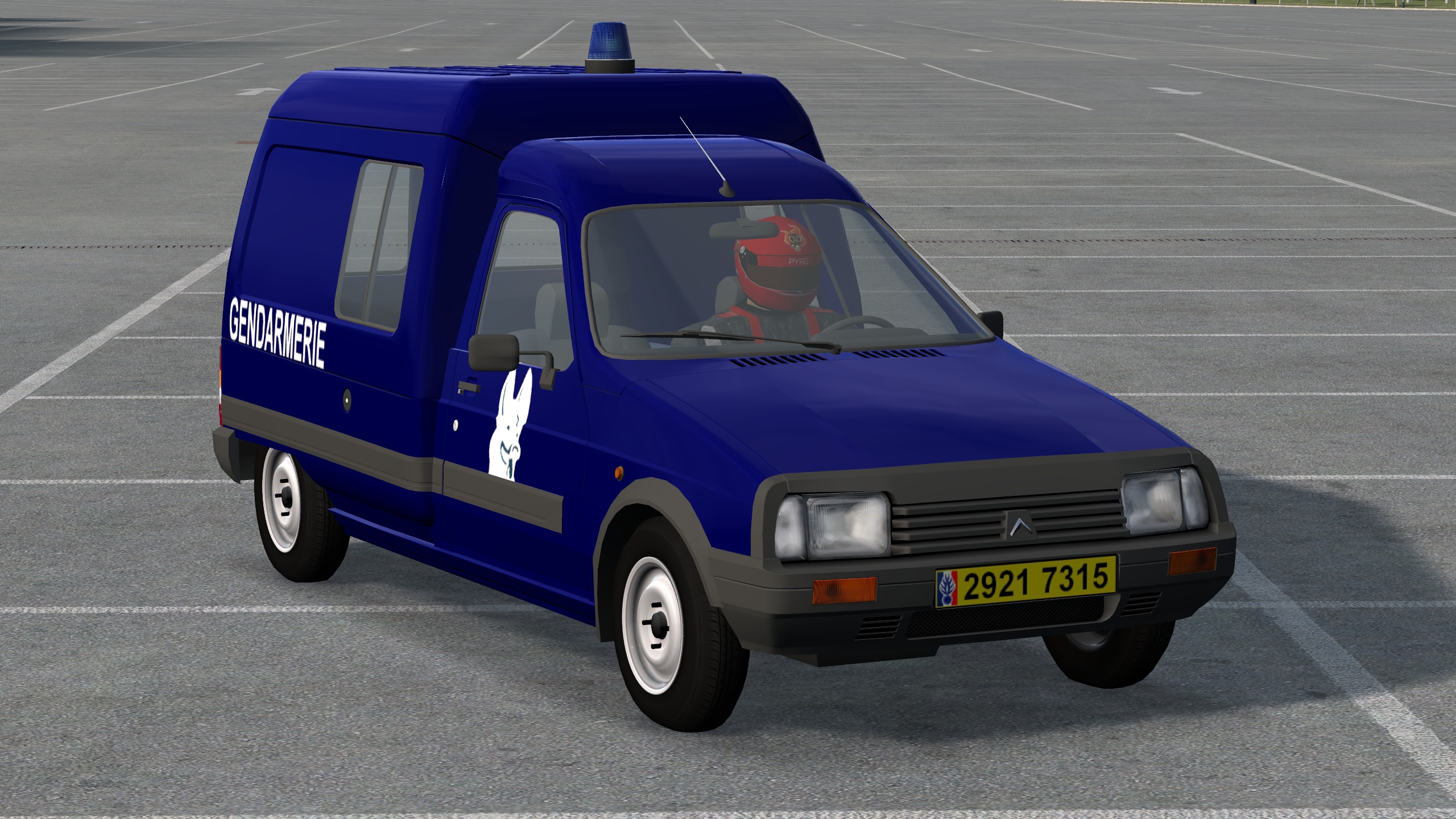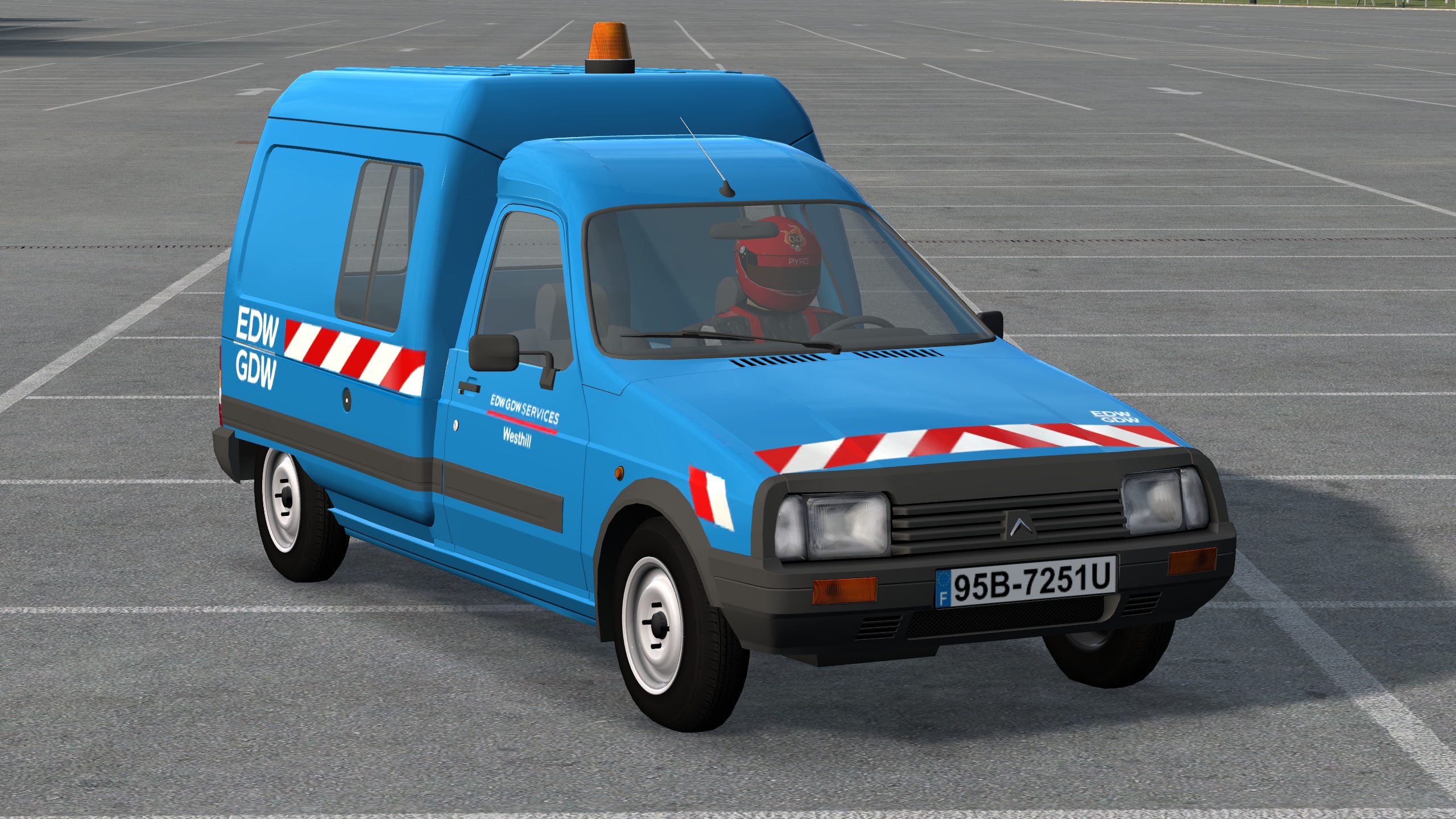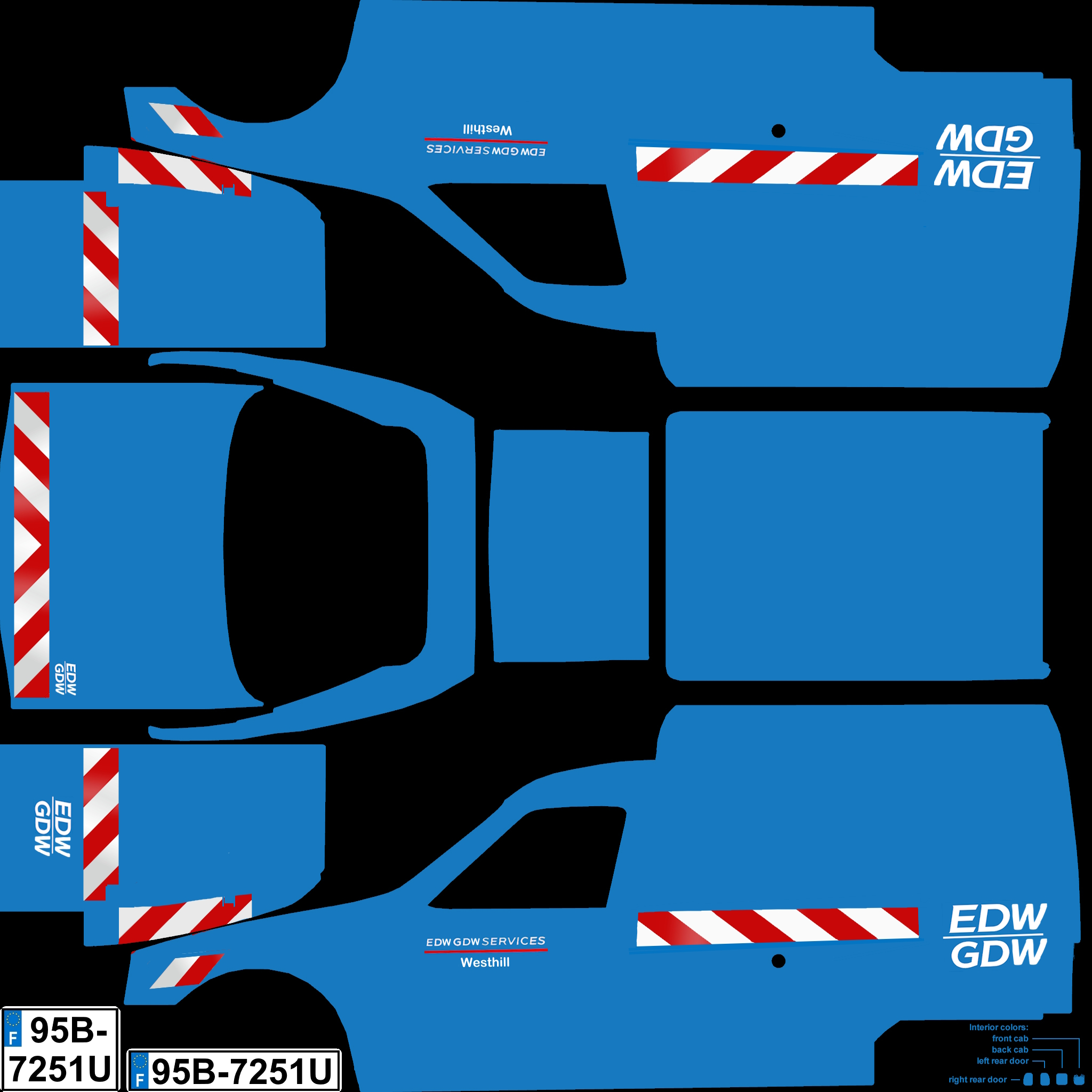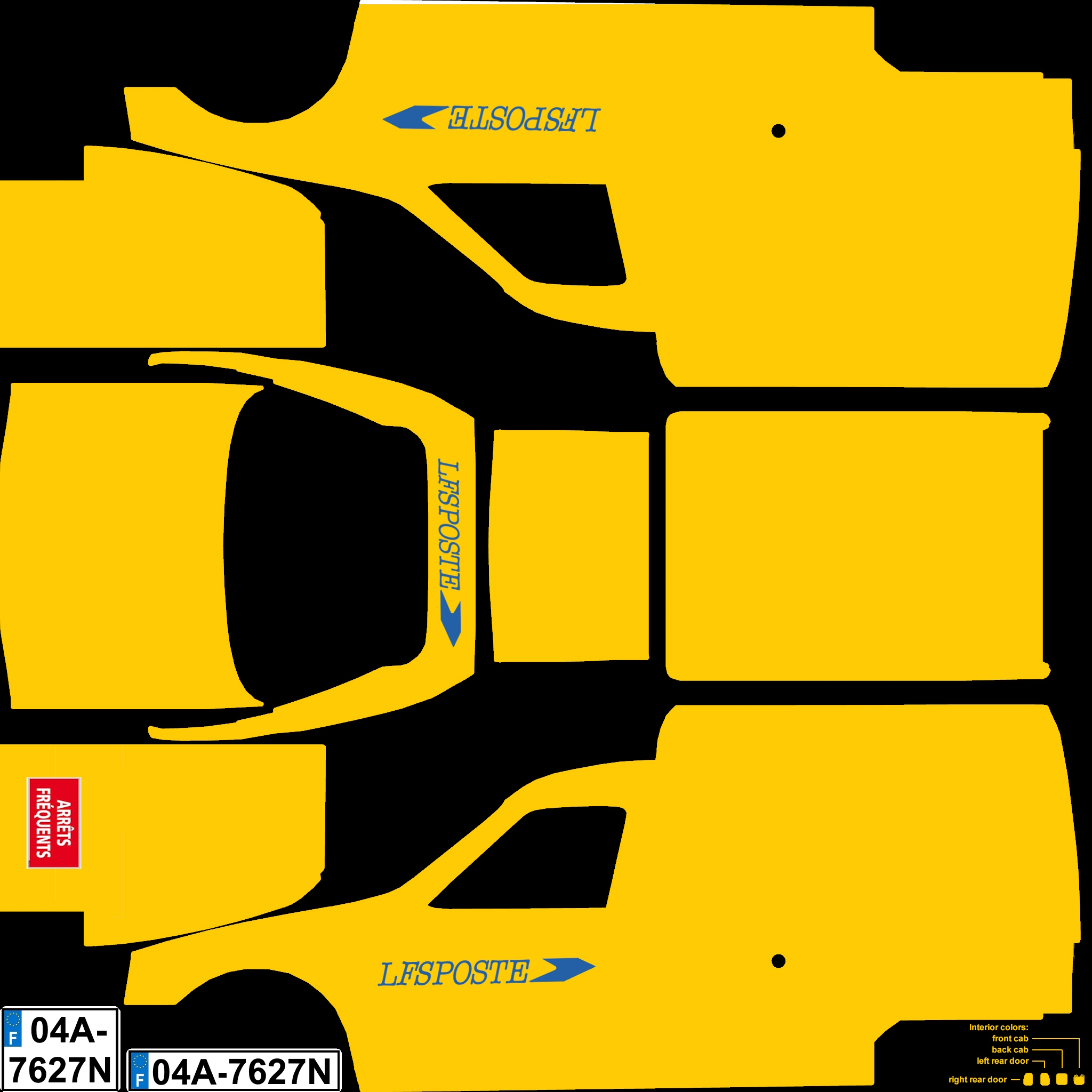 French van. 8 configs: open/closed, beacons, sknnable plates