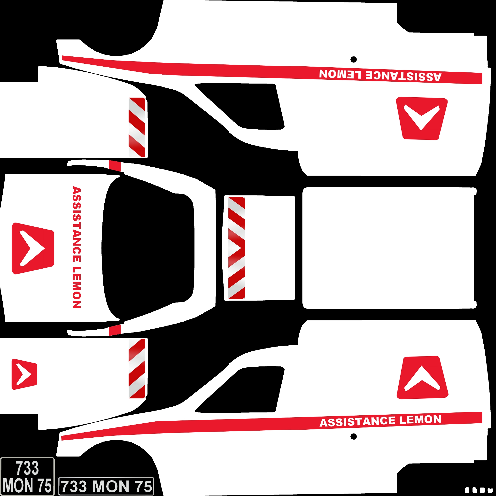 The LFS Vehicle editor provides options to create skin templates. A template helps you create skins for a vehicle by giving you the outlines of the vehicle's shape, within which you can draw the livery that will be drawn onto the vehicle.