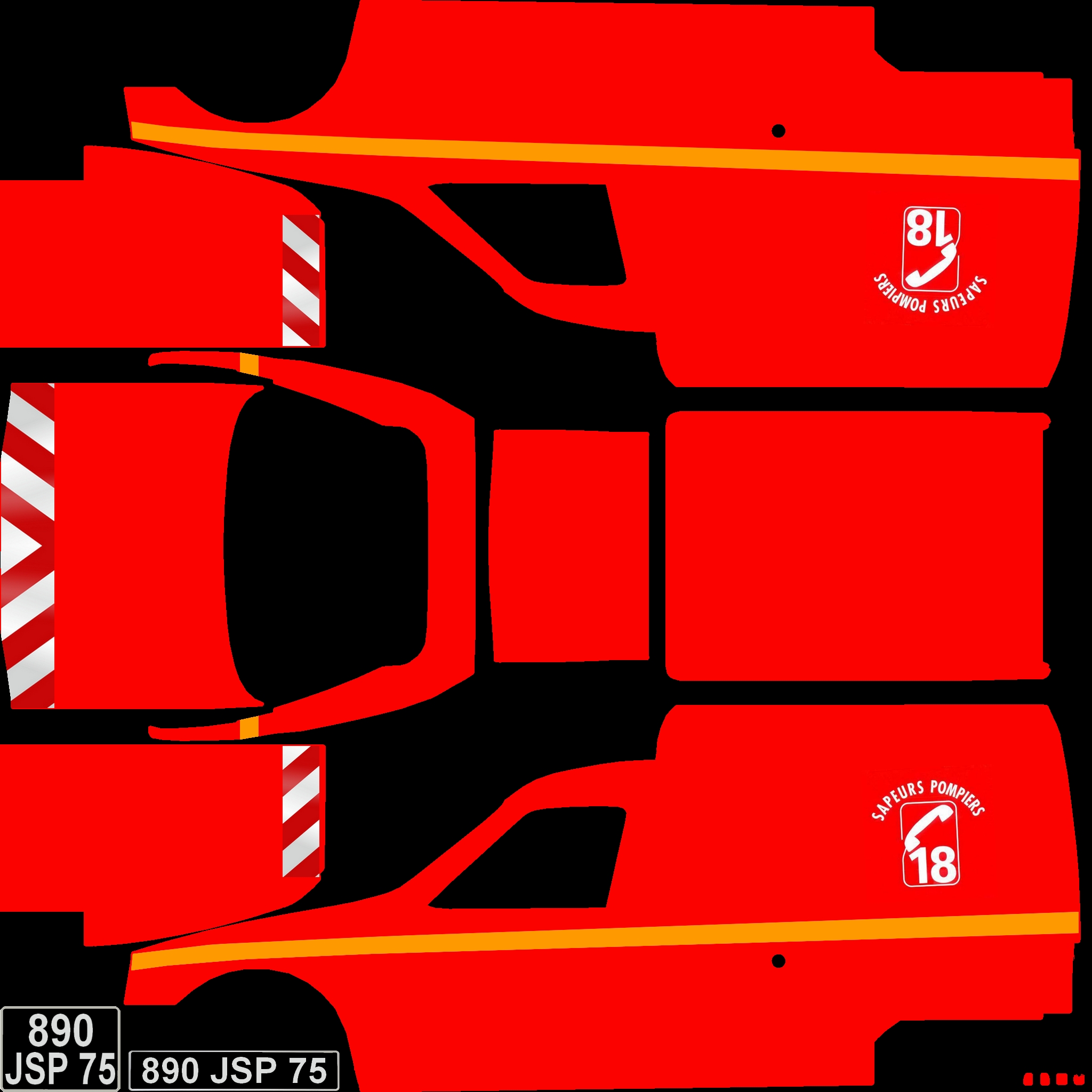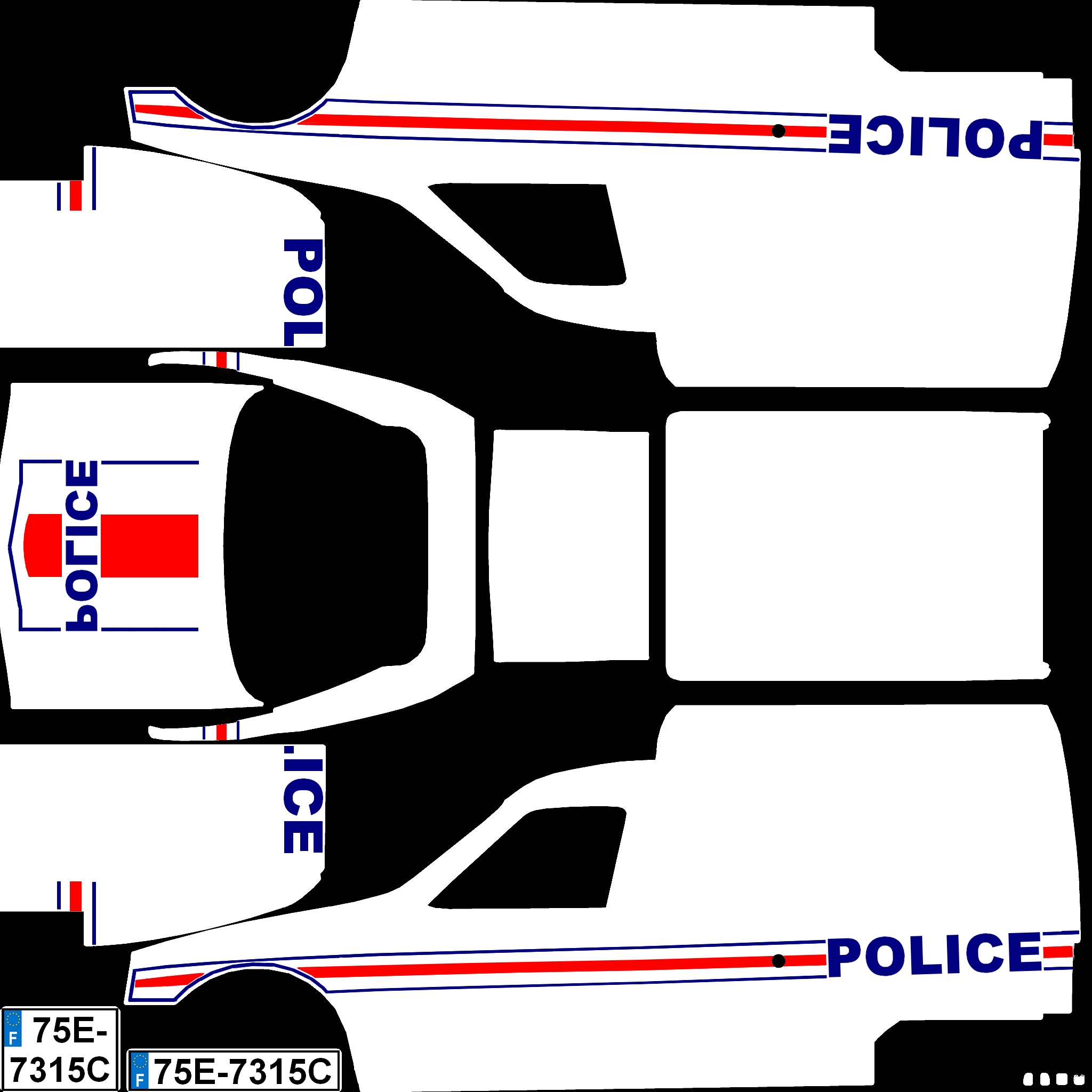 8 configurations - open and closed side and rear windows, skinnable number plates, orange or blue beacons.