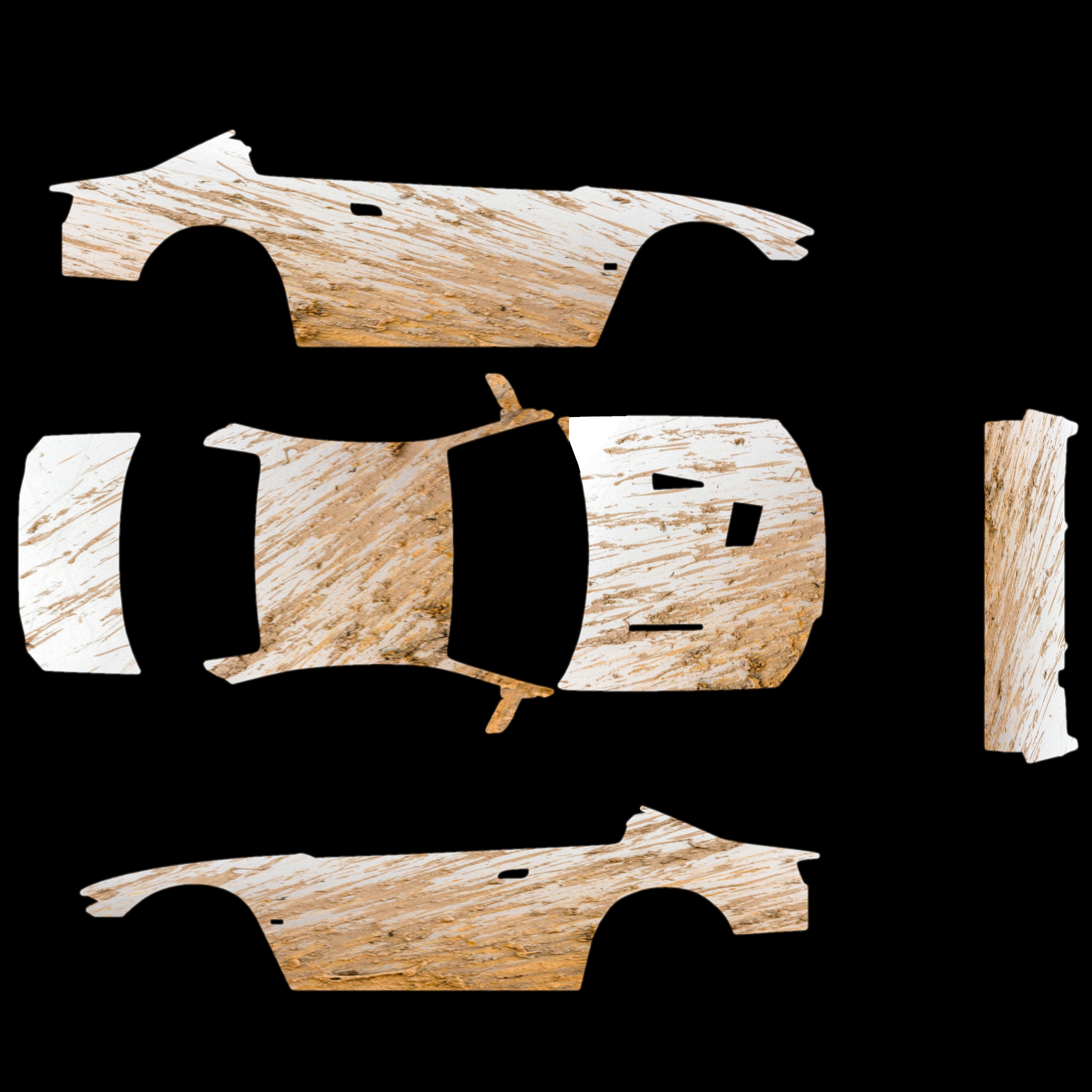 The LFS Vehicle editor provides options to create skin templates. A template helps you create skins for a vehicle by giving you the outlines of the vehicle's shape, within which you can draw the livery that will be drawn onto the vehicle.