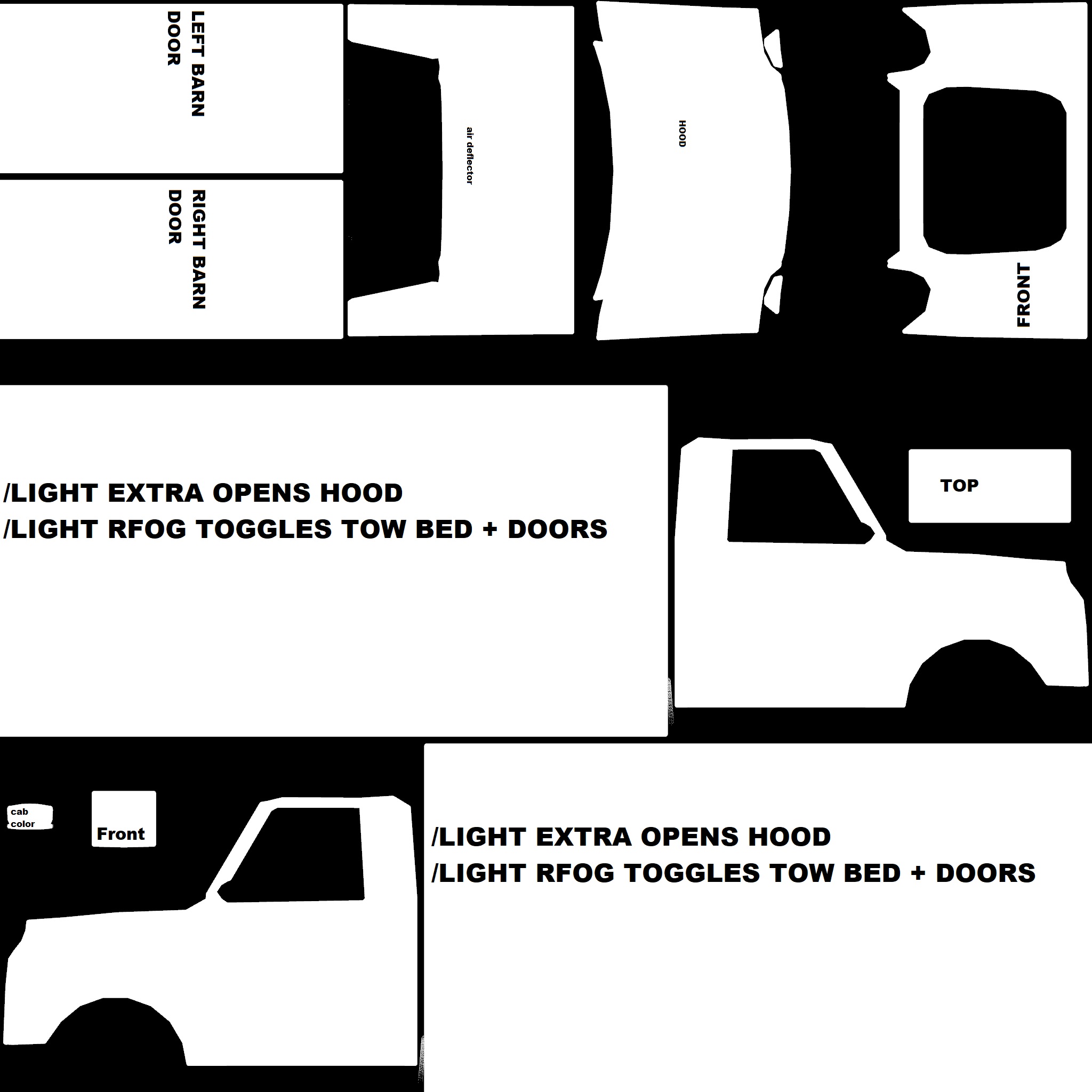 The LFS Vehicle editor provides options to create skin templates. A template helps you create skins for a vehicle by giving you the outlines of the vehicle's shape, within which you can draw the livery that will be drawn onto the vehicle.