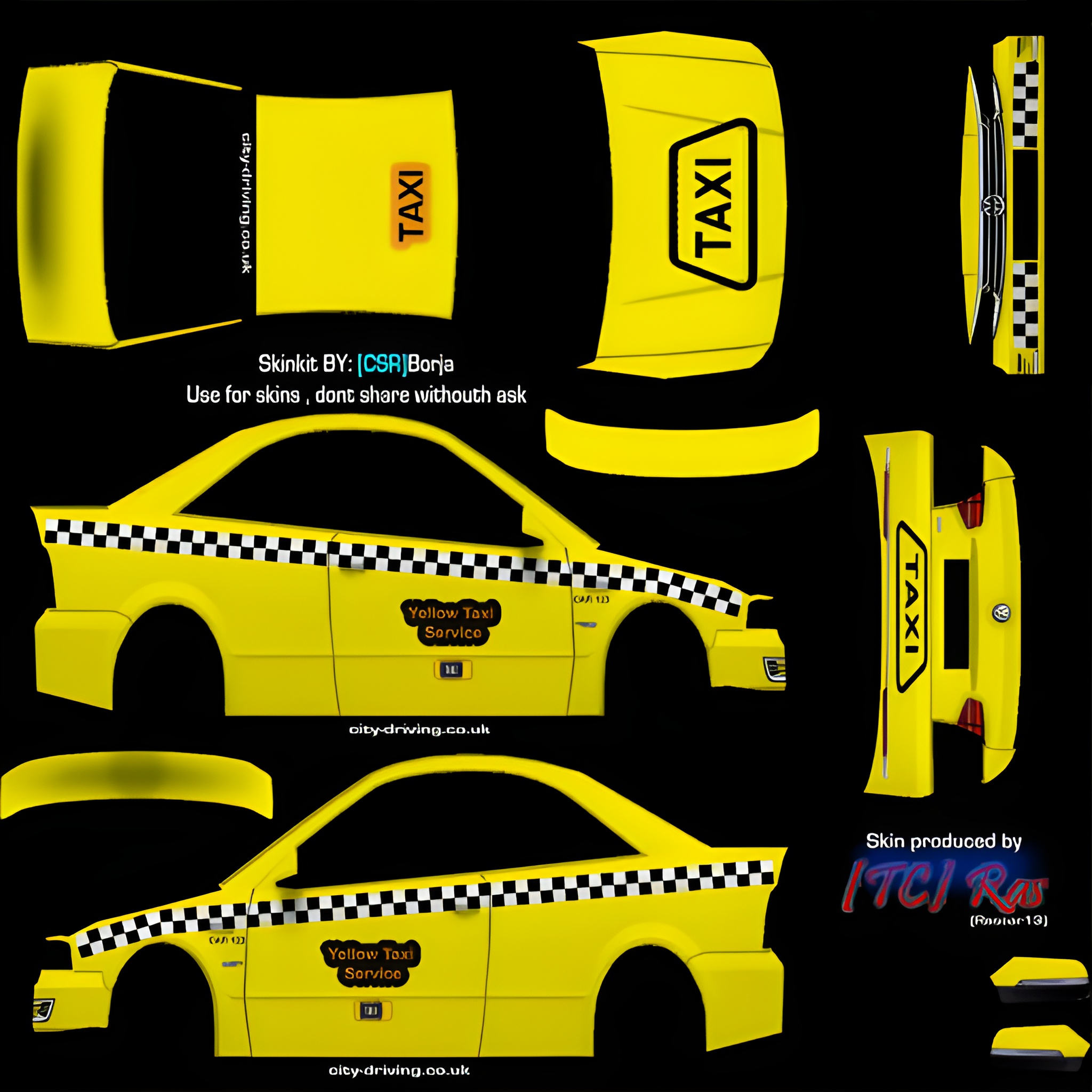 Cop skin made by Ghutra (ibtasim6781). Taxi skin made by Ras (Rascar13). Lightbar and windshield lights models made by tommer.