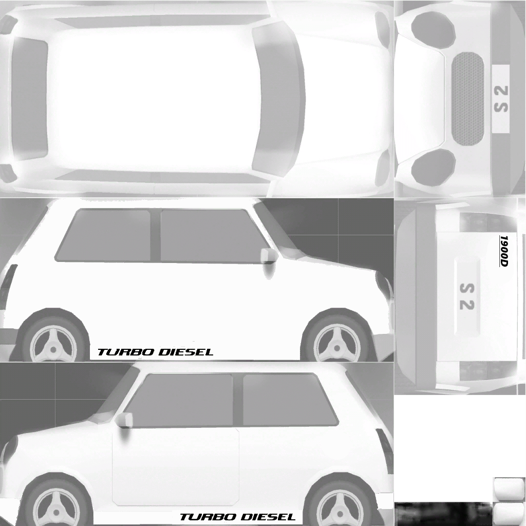 The LFS Vehicle editor provides options to create skin templates. A template helps you create skins for a vehicle by giving you the outlines of the vehicle's shape, within which you can draw the livery that will be drawn onto the vehicle.