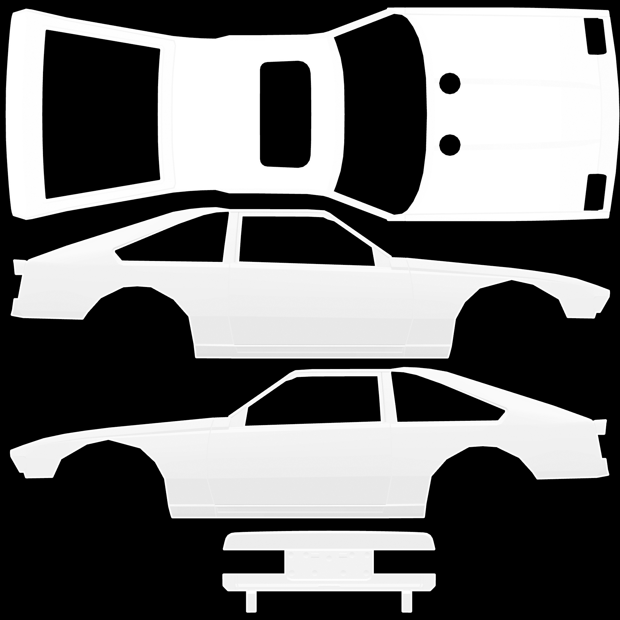 The LFS Vehicle editor provides options to create skin templates. A template helps you create skins for a vehicle by giving you the outlines of the vehicle's shape, within which you can draw the livery that will be drawn onto the vehicle.