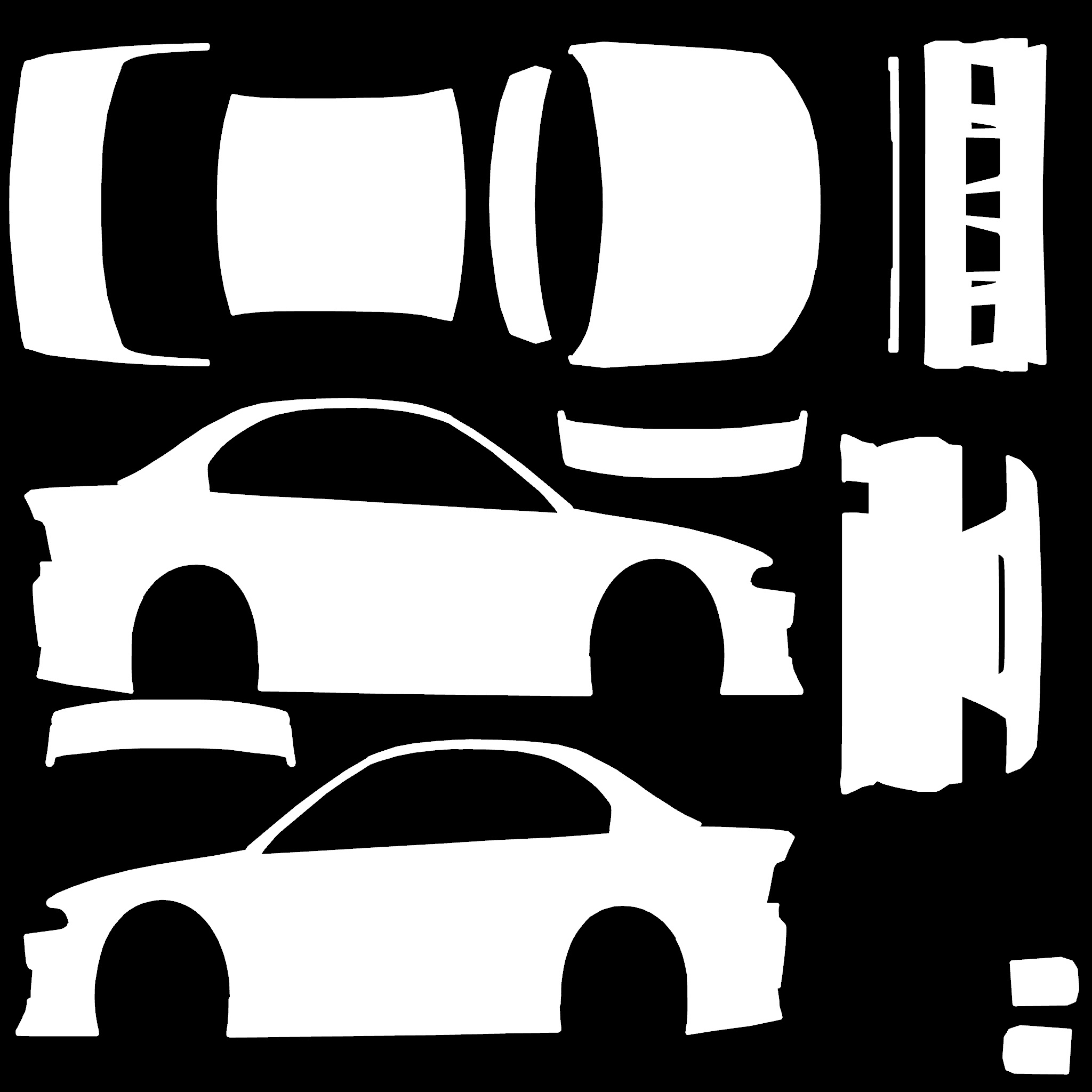 The LFS Vehicle editor provides options to create skin templates. A template helps you create skins for a vehicle by giving you the outlines of the vehicle's shape, within which you can draw the livery that will be drawn onto the vehicle.