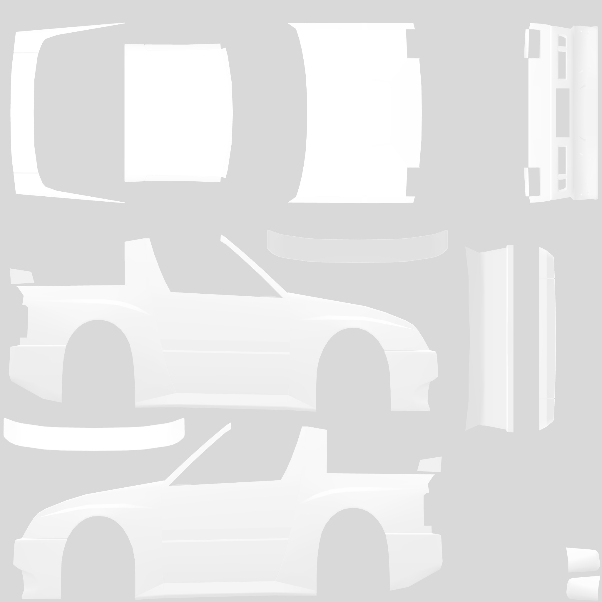 The LFS Vehicle editor provides options to create skin templates. A template helps you create skins for a vehicle by giving you the outlines of the vehicle's shape, within which you can draw the livery that will be drawn onto the vehicle.