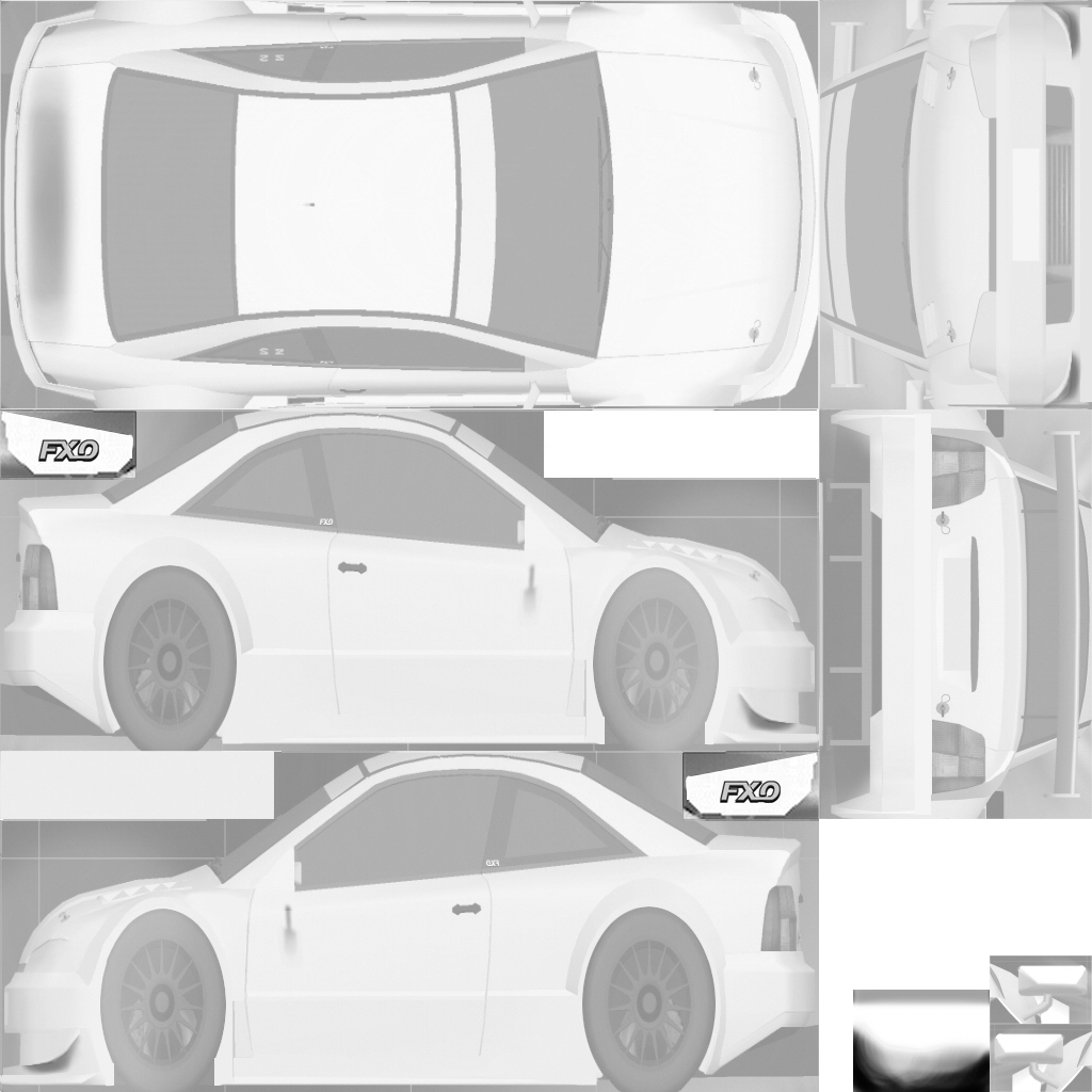 The LFS Vehicle editor provides options to create skin templates. A template helps you create skins for a vehicle by giving you the outlines of the vehicle's shape, within which you can draw the livery that will be drawn onto the vehicle.