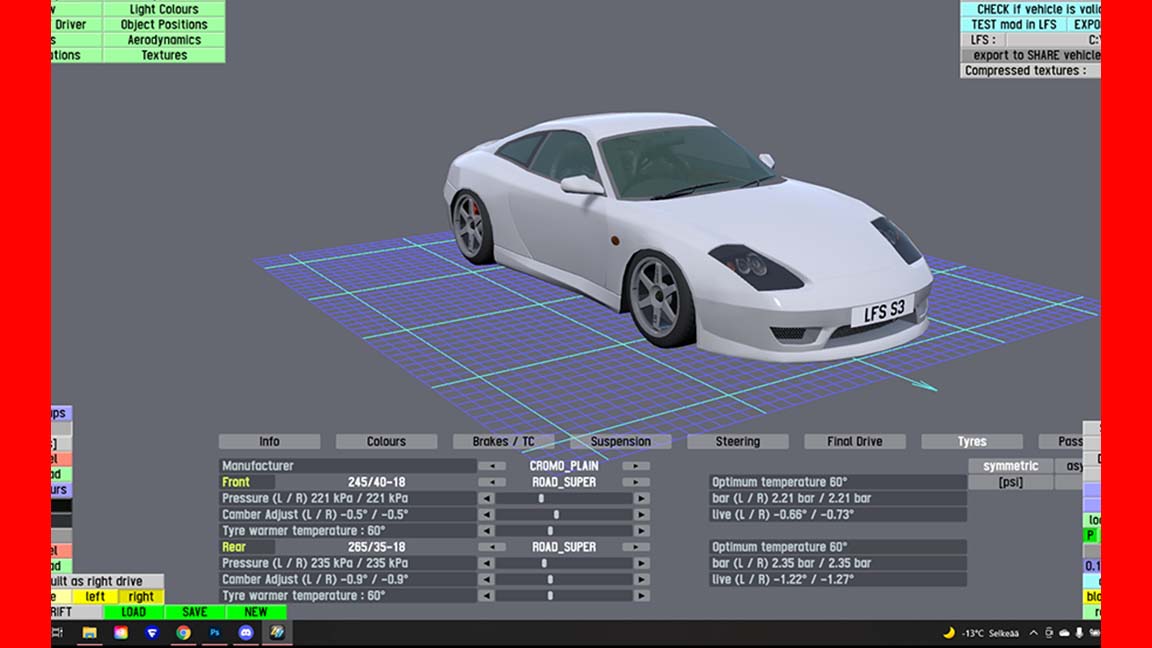 The LFS Vehicle editor provides options to create skin templates. A template helps you create skins for a vehicle by giving you the outlines of the vehicle's shape, within which you can draw the livery that will be drawn onto the vehicle.