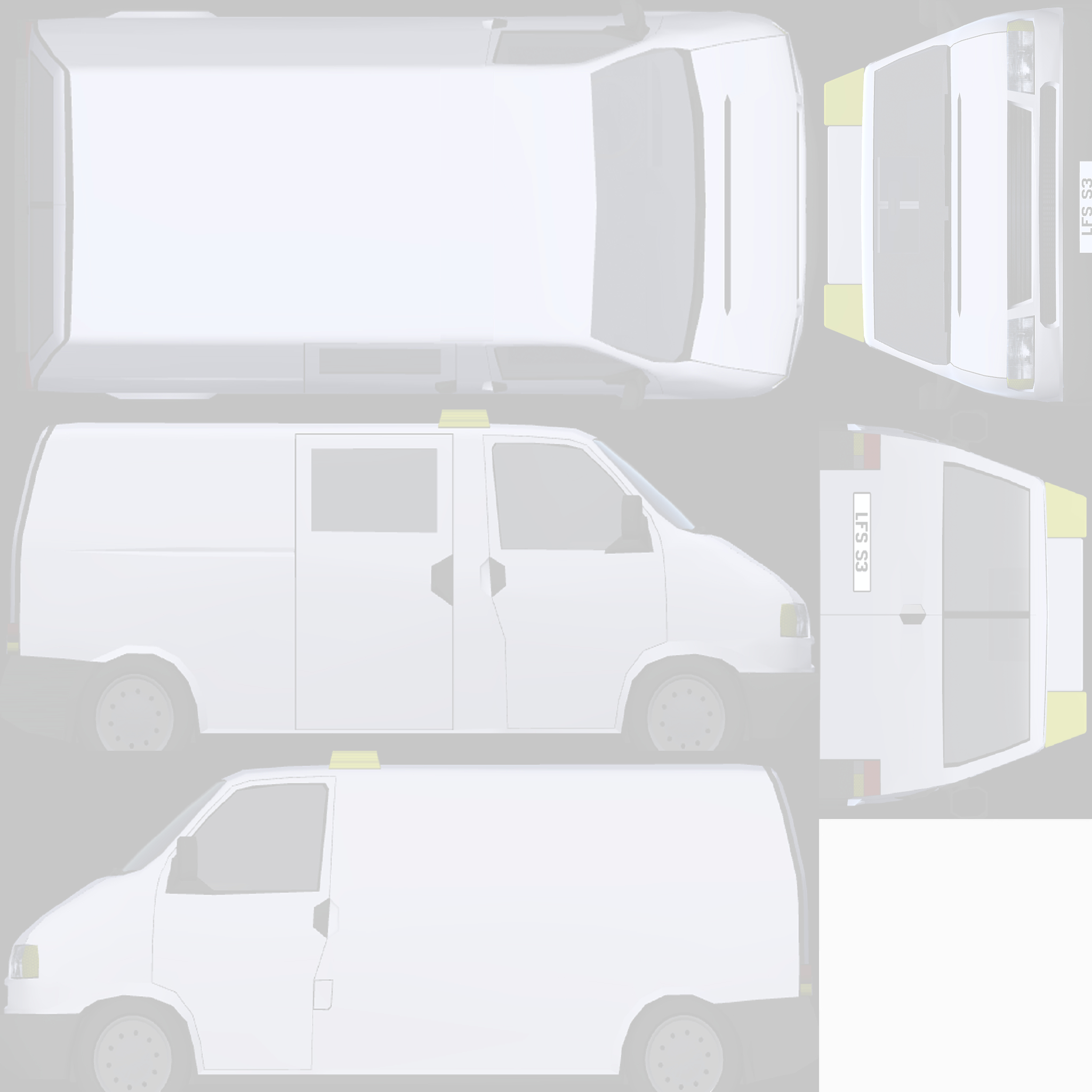 The LFS Vehicle editor provides options to create skin templates. A template helps you create skins for a vehicle by giving you the outlines of the vehicle's shape, within which you can draw the livery that will be drawn onto the vehicle.