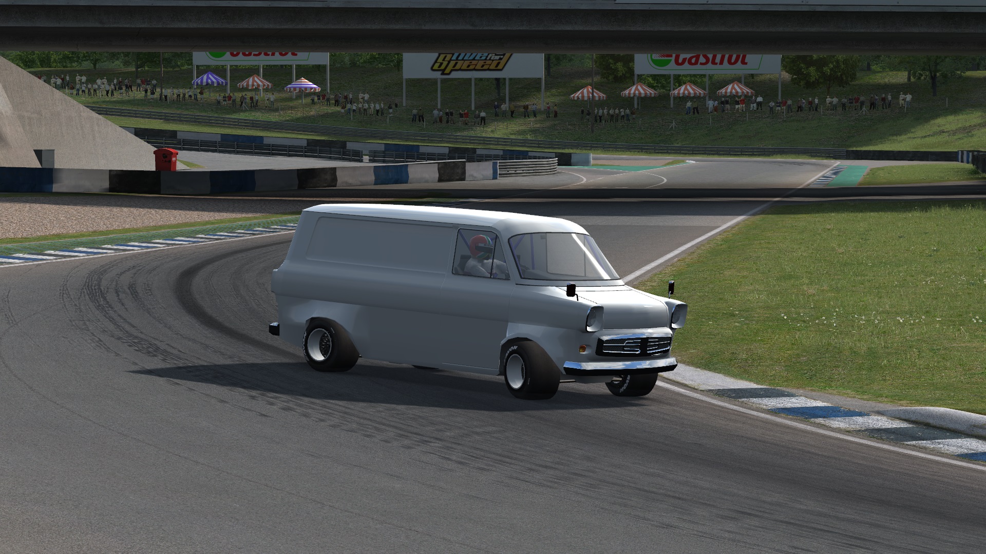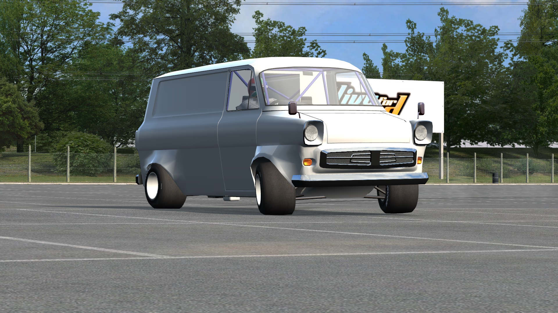 This is a homage to that car, the crazy Ford Supervan 1. This should bring a smile to your face and horror to your competitors as you rip around the track in what is anything but a slow workhorse. CAUTION, its a van, with a V8, slicks and racing suspension.....but its still a van, so if you hit the curbs hard while turning you might just end up on 2 wheels or rolling. Lets see how good your driving skills are with this one