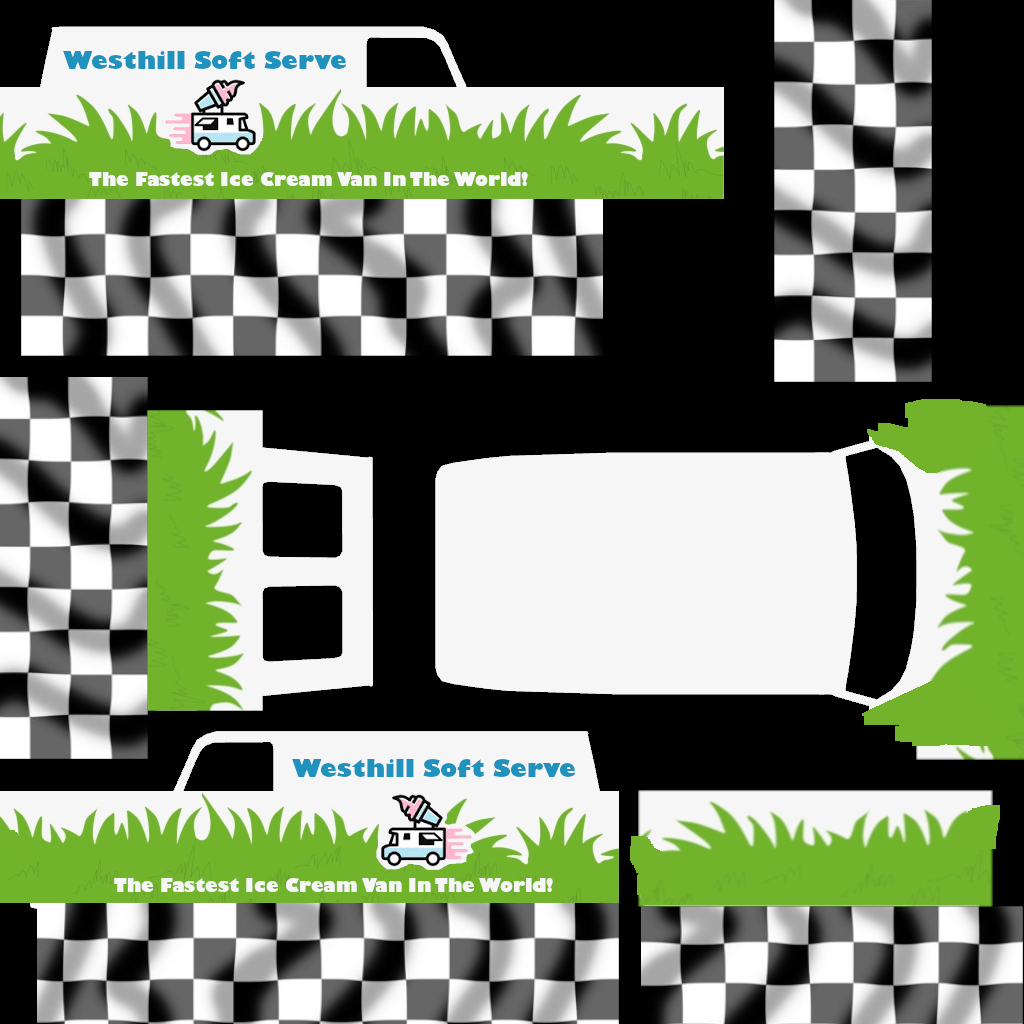 The LFS Vehicle editor provides options to create skin templates. A template helps you create skins for a vehicle by giving you the outlines of the vehicle's shape, within which you can draw the livery that will be drawn onto the vehicle.