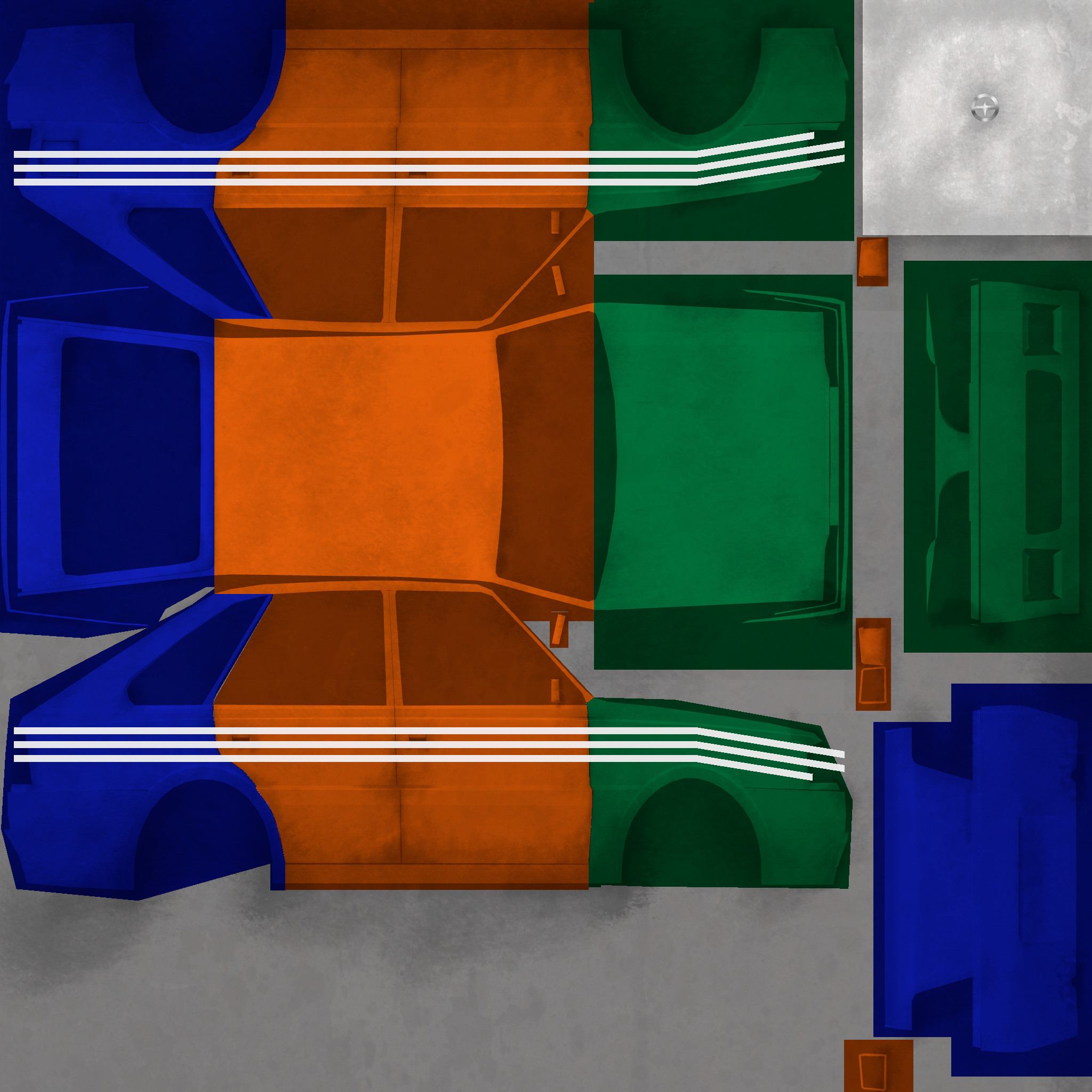 The LFS Vehicle editor provides options to create skin templates. A template helps you create skins for a vehicle by giving you the outlines of the vehicle's shape, within which you can draw the livery that will be drawn onto the vehicle.