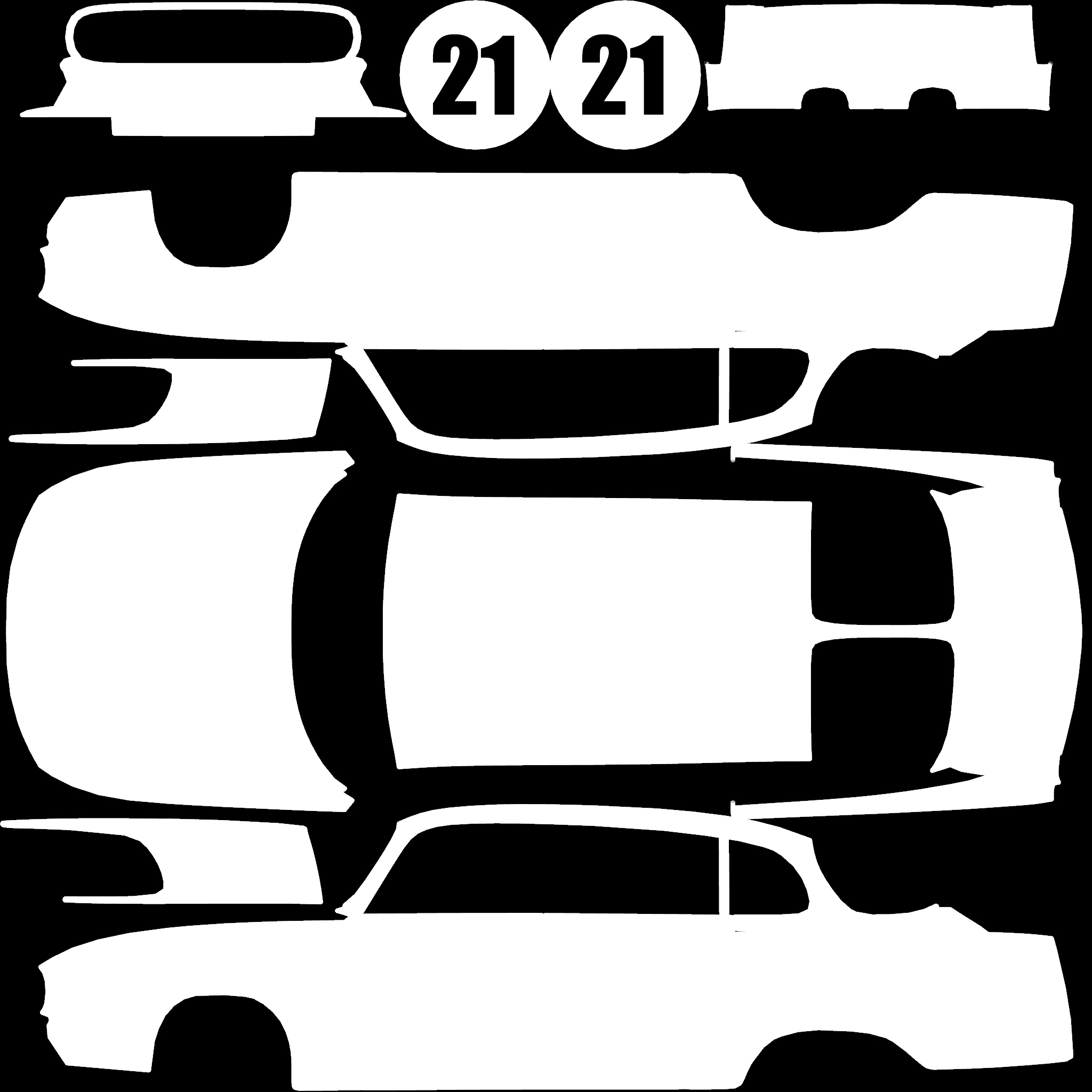 The LFS Vehicle editor provides options to create skin templates. A template helps you create skins for a vehicle by giving you the outlines of the vehicle's shape, within which you can draw the livery that will be drawn onto the vehicle.