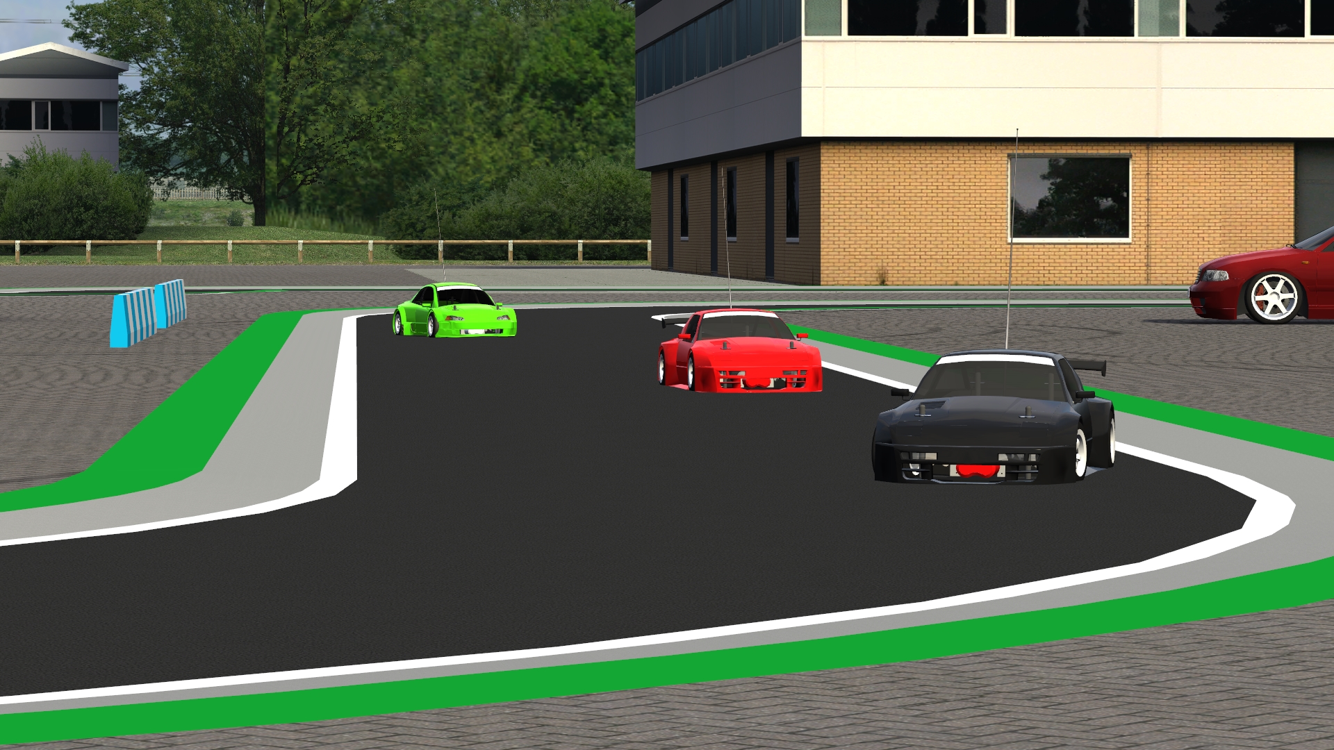 Tracks have no collisions because of editor limitations, because of this I recommended to use a custom layout on LAYOUT SQUARE / AUTOCROSS and set some restricted areas. WESTHILL in the commercial building area works well too