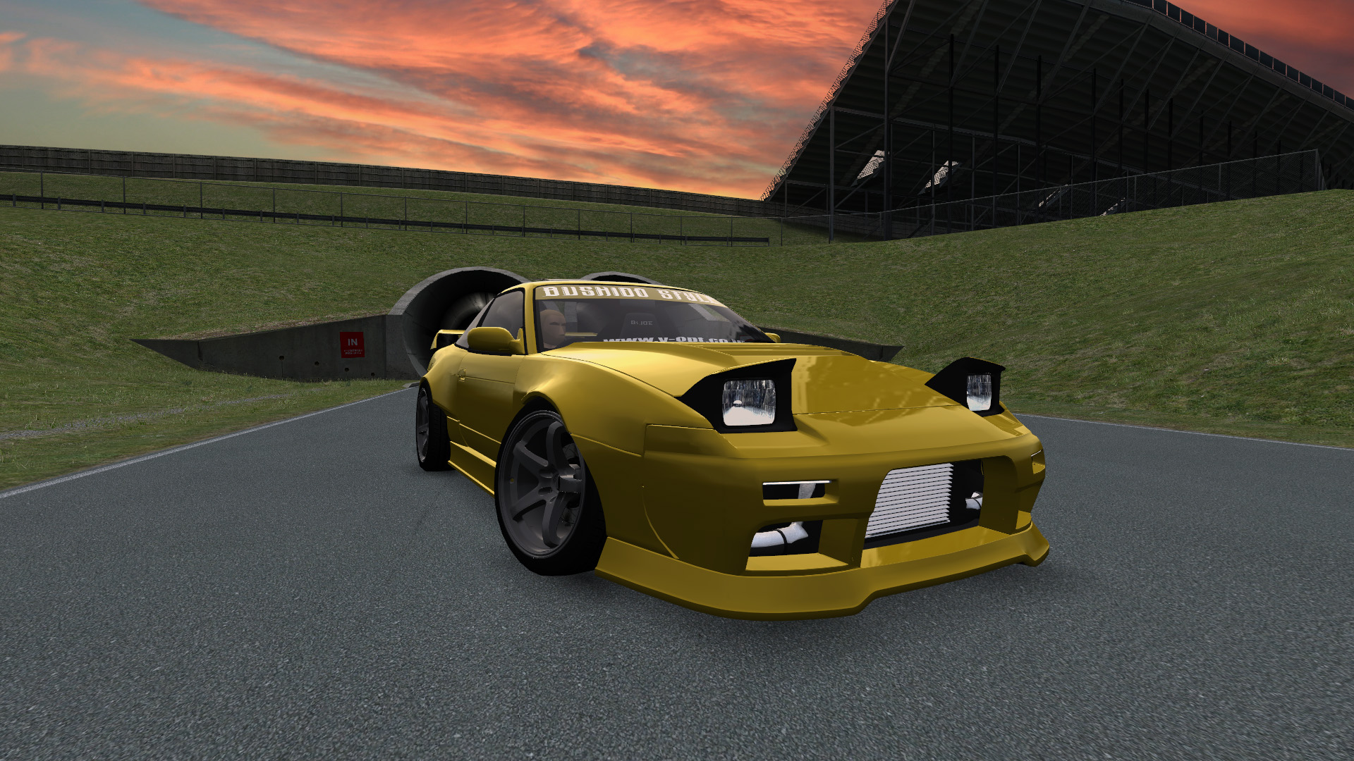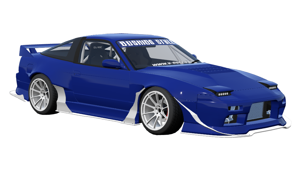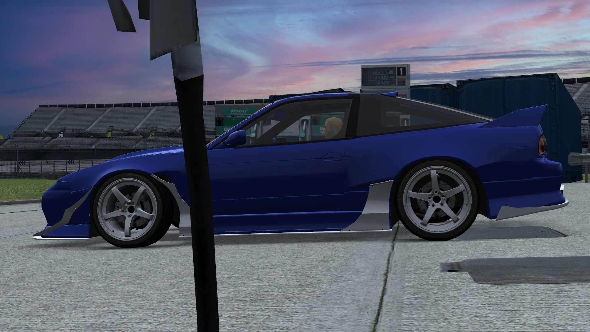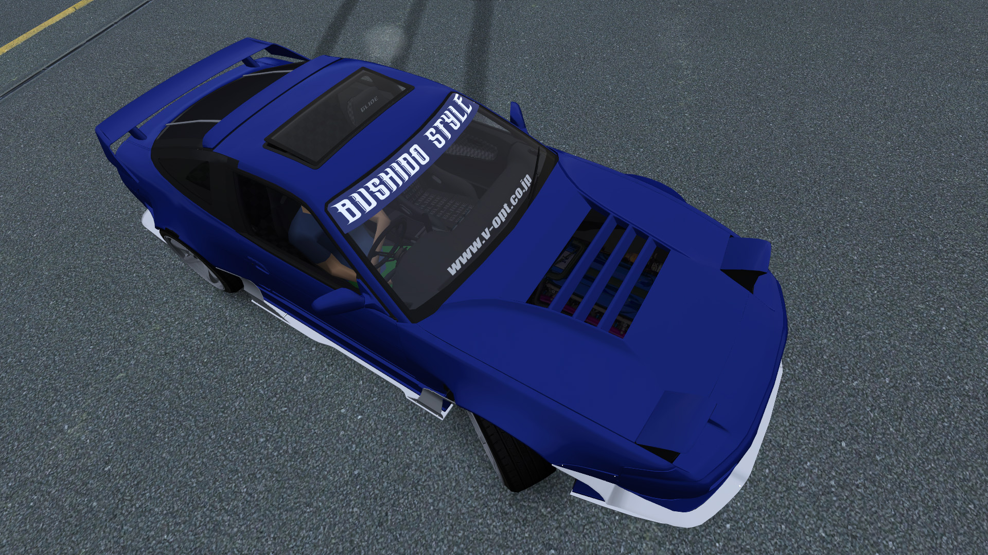 License credits : Original model by Lexyc16 published on sketchfab: https://sketchfab.com/3d-models/nissan-180sx-1989-updated-562b13e0e8ff40ecb39202b57811b5ef Original mod + heavily reworked mesh by OpenClutch: https://www.lfs.net/files/vehmods/A0CB3A Martin18: - Suspension and frame LFS: - Wiper blades from RB4 - Sunvisors from RB4 - Seat from RB4 - Side indicator from XRT AHPP for: - Sunroof (heavily adjusted) - Exhaust - Japanese plate