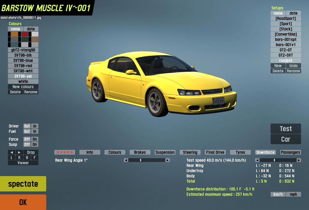The LFS Vehicle editor provides options to create skin templates. A template helps you create skins for a vehicle by giving you the outlines of the vehicle's shape, within which you can draw the livery that will be drawn onto the vehicle.