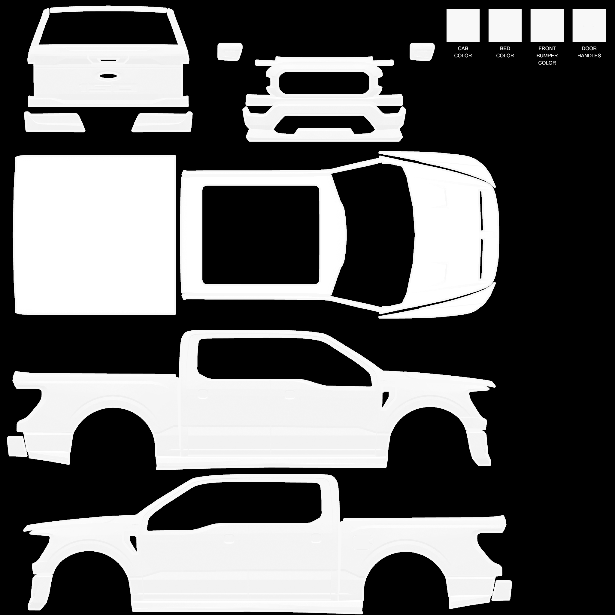 The LFS Vehicle editor provides options to create skin templates. A template helps you create skins for a vehicle by giving you the outlines of the vehicle's shape, within which you can draw the livery that will be drawn onto the vehicle.