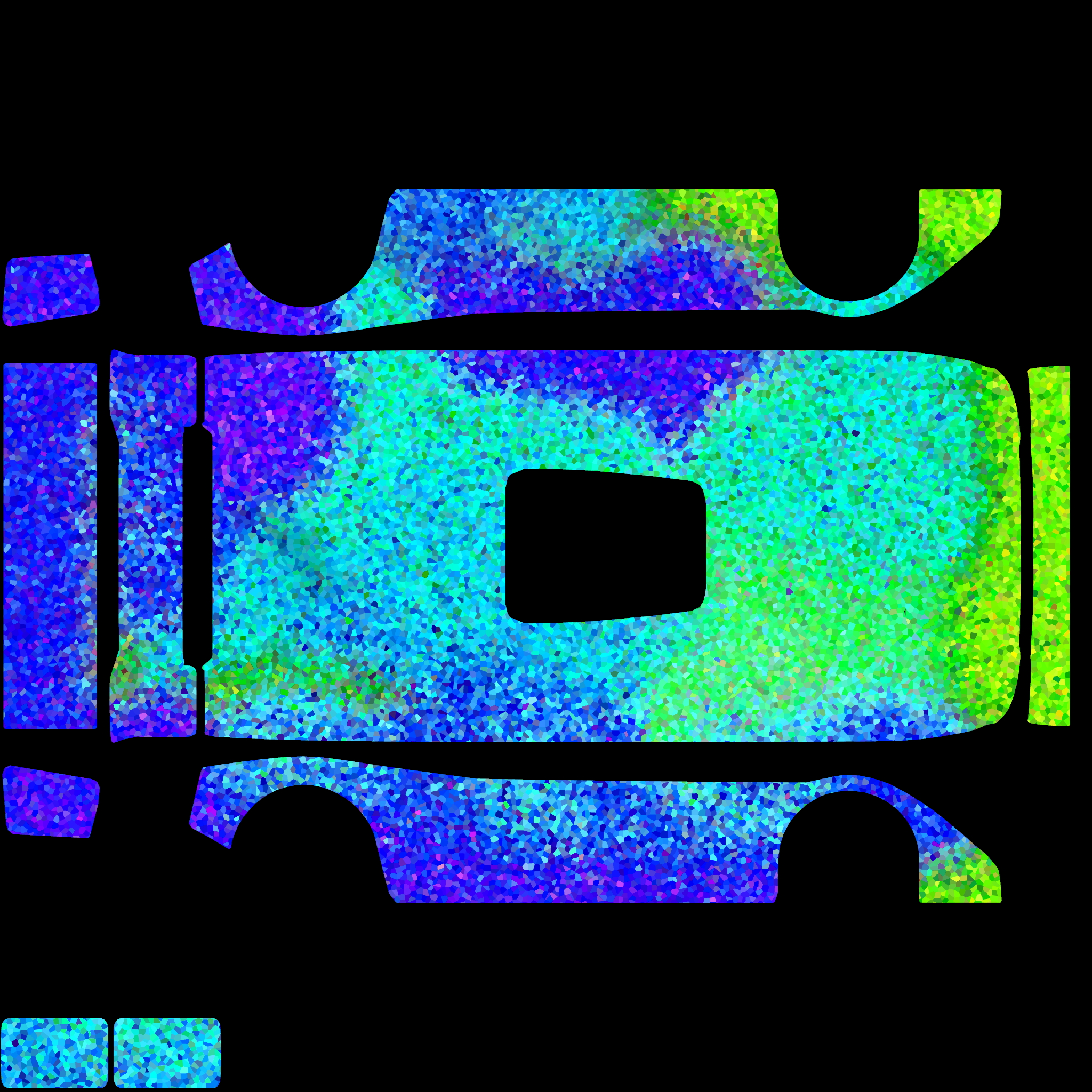 The LFS Vehicle editor provides options to create skin templates. A template helps you create skins for a vehicle by giving you the outlines of the vehicle's shape, within which you can draw the livery that will be drawn onto the vehicle.