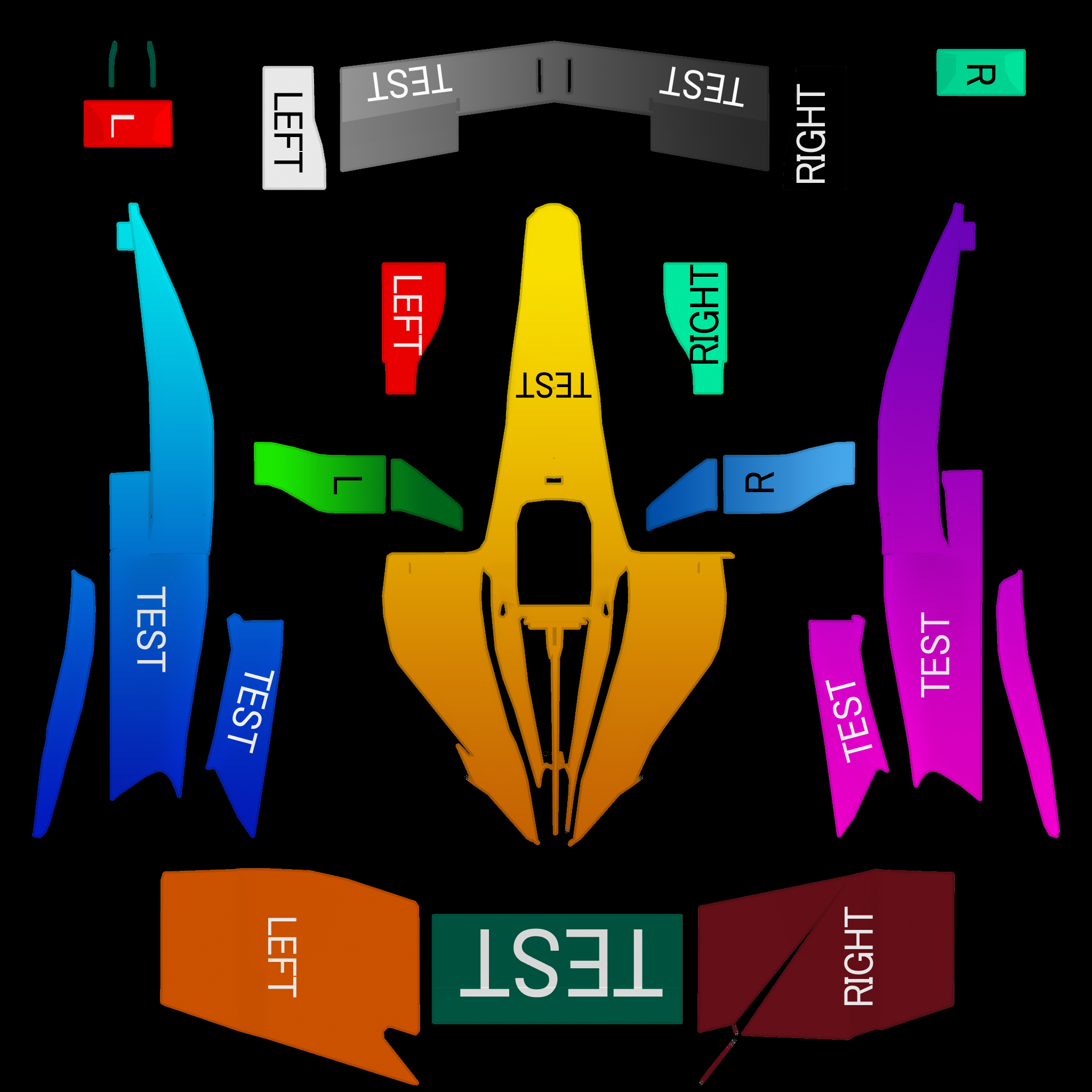 The LFS Vehicle editor provides options to create skin templates. A template helps you create skins for a vehicle by giving you the outlines of the vehicle's shape, within which you can draw the livery that will be drawn onto the vehicle.