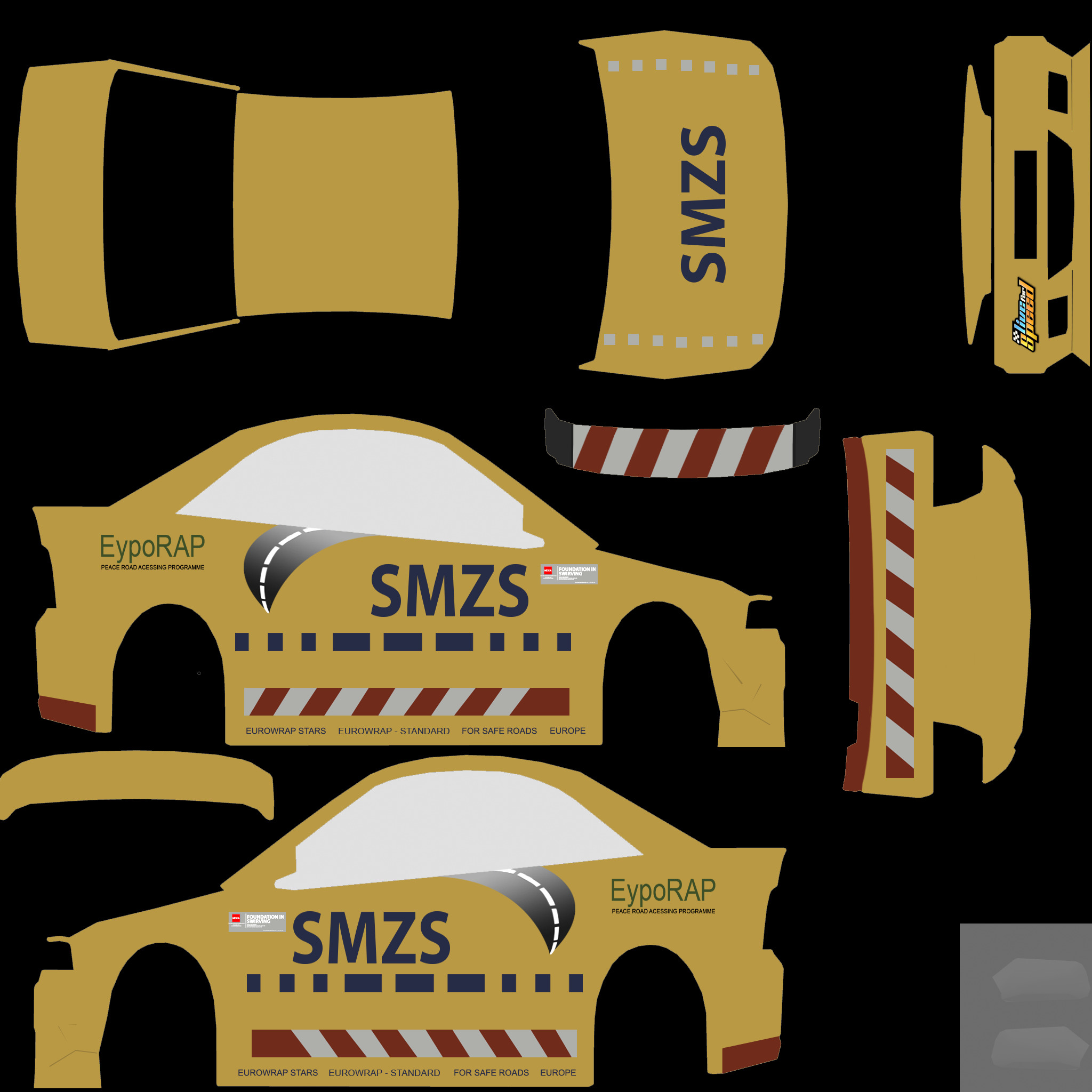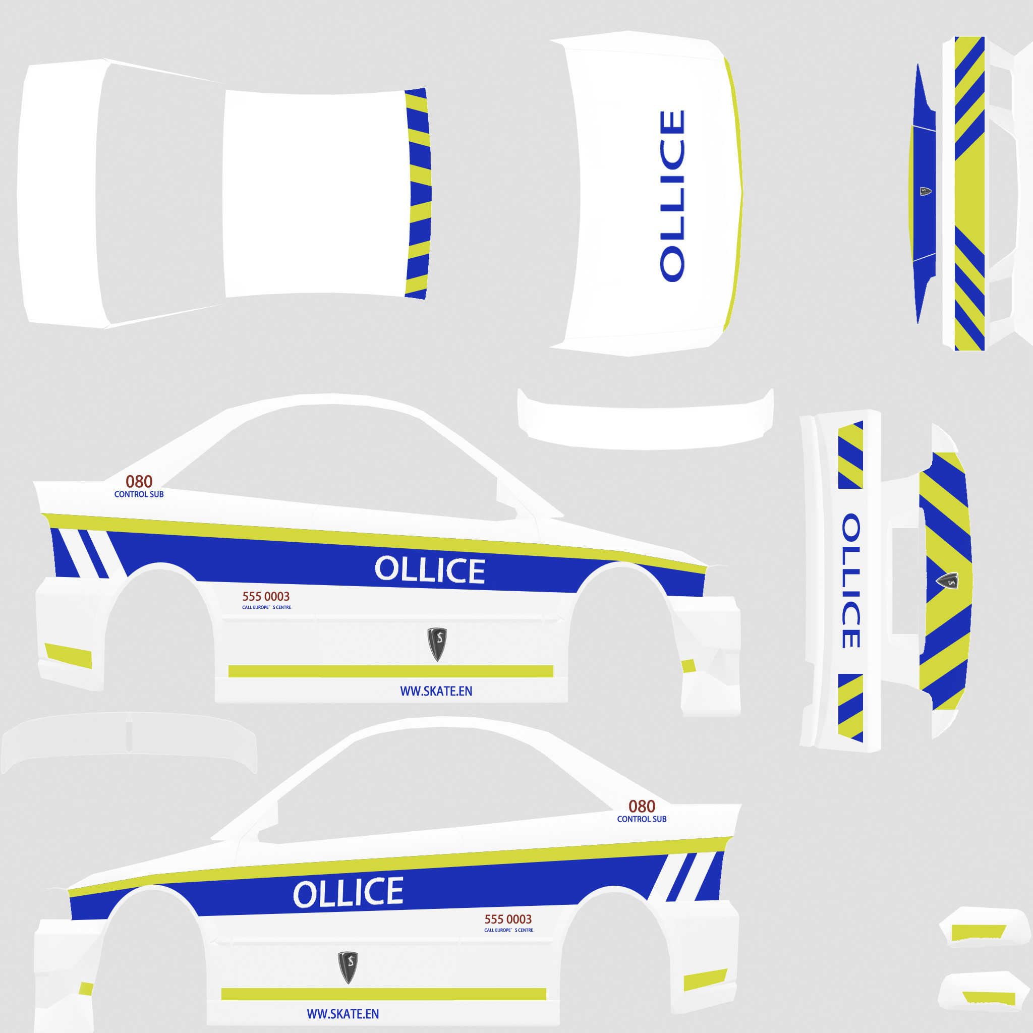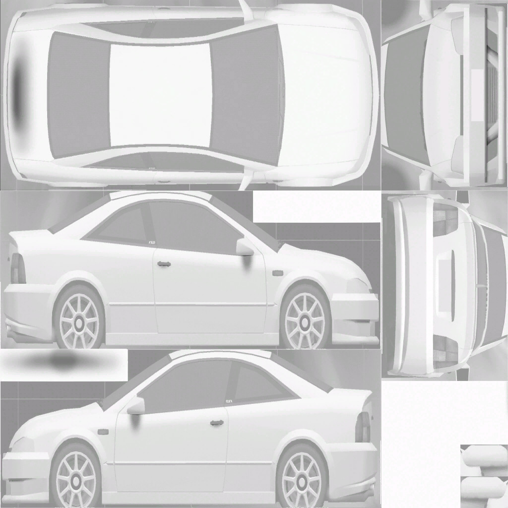 The LFS Vehicle editor provides options to create skin templates. A template helps you create skins for a vehicle by giving you the outlines of the vehicle's shape, within which you can draw the livery that will be drawn onto the vehicle.