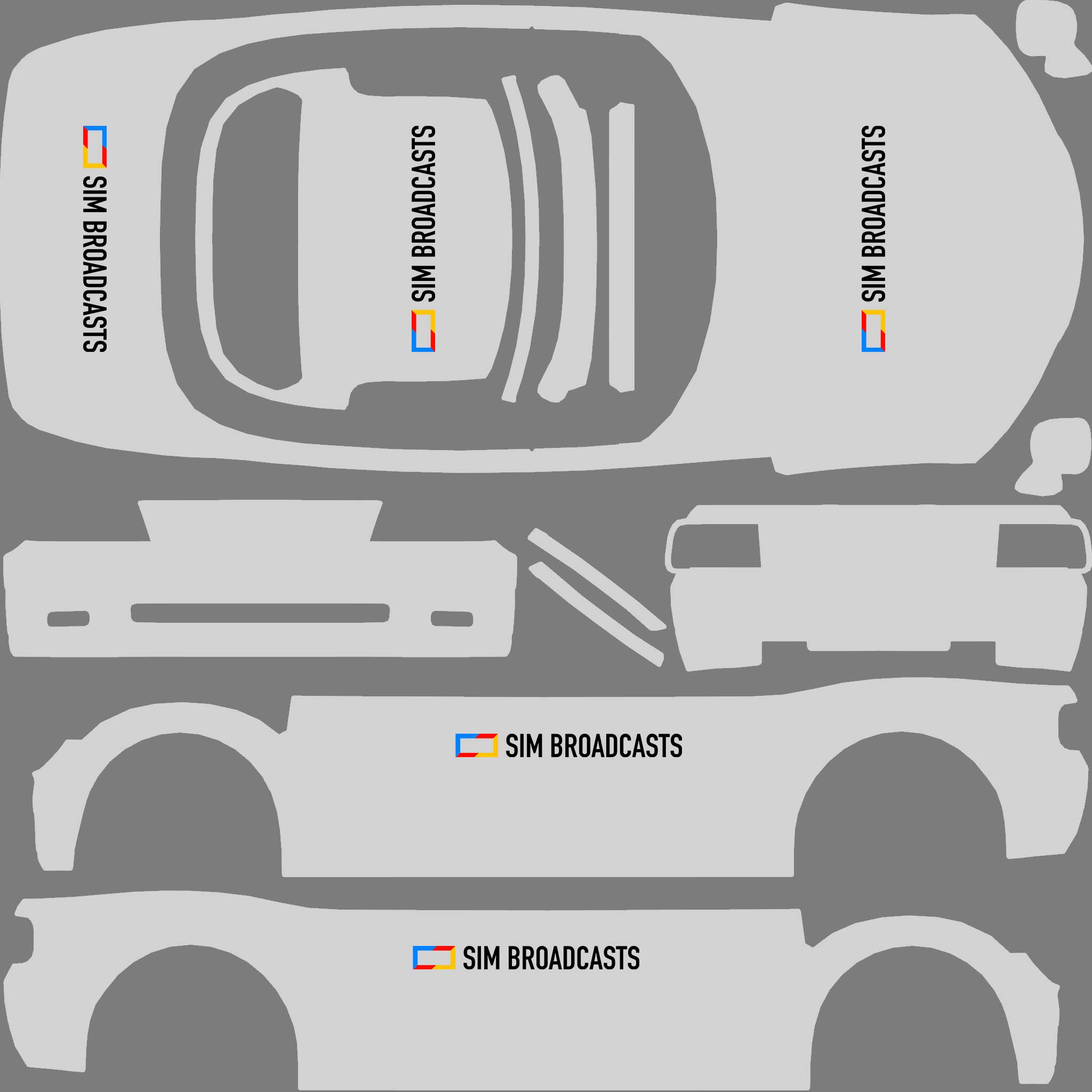 The LFS Vehicle editor provides options to create skin templates. A template helps you create skins for a vehicle by giving you the outlines of the vehicle's shape, within which you can draw the livery that will be drawn onto the vehicle.